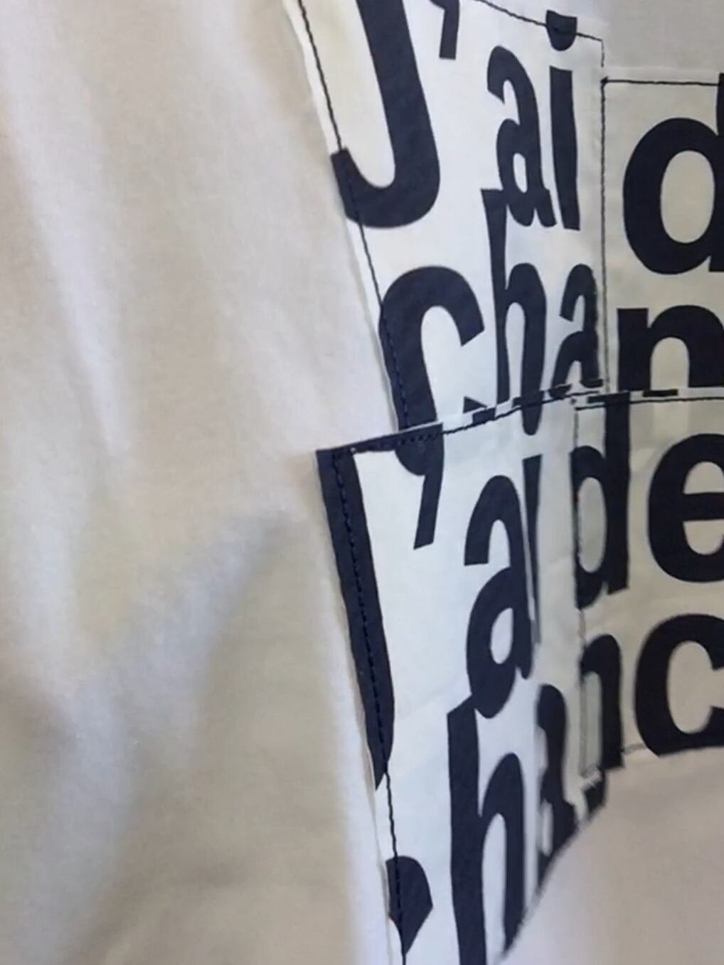 布帛にプリントしたものをバラバラにして縫い付けてあるユニークなTシャツ。
