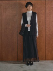 オーガンジーの両サイドに深いスリットをいれて、動く度にエアリーなムードが楽しめ、女性らしさもUP。
