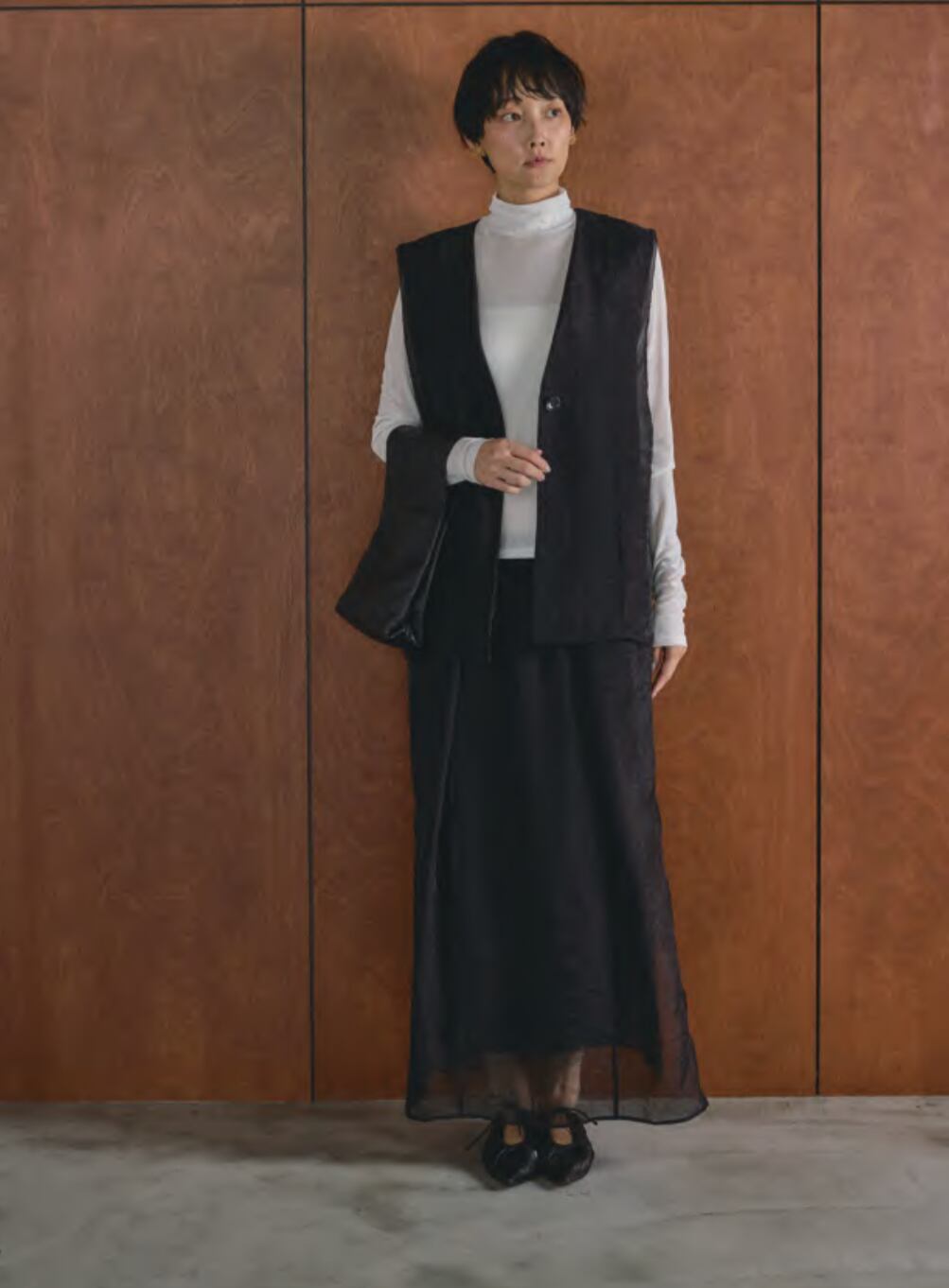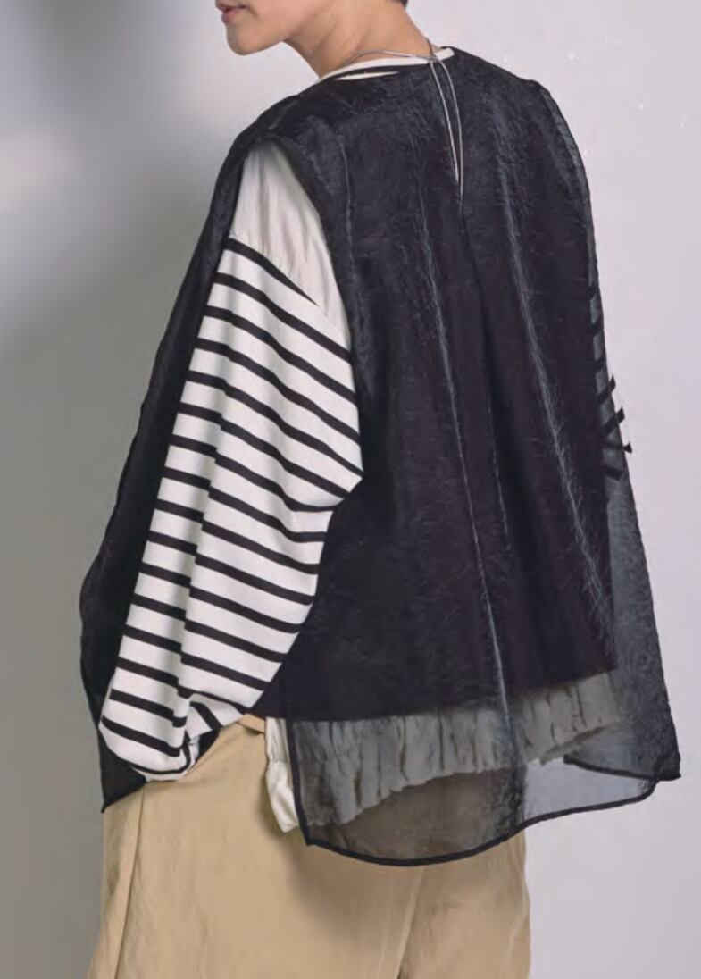 ナチュラルなシワ感のあるオーガンジーを大胆に全面に重ねたデザインジレ。