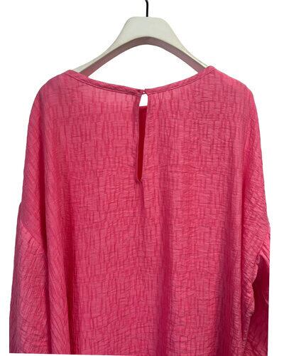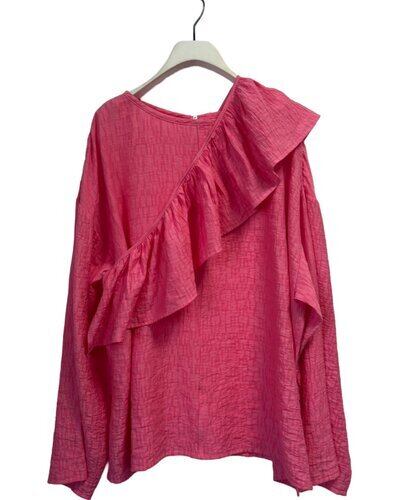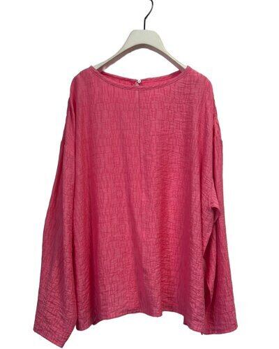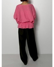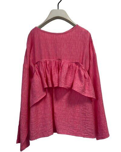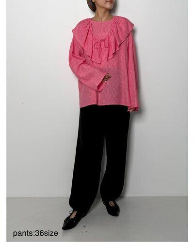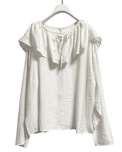 凹凸感のある楊柳 をしようした、フリルの衿付のTブラウス。