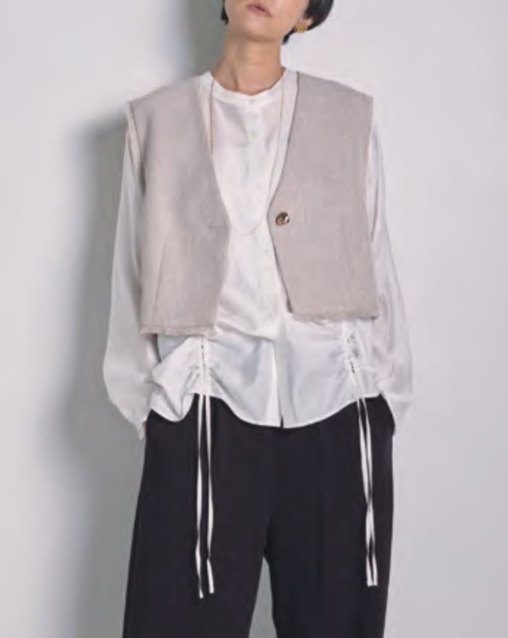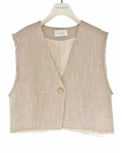織りの凹凸感による表情が高級感のある、ツイード素材を使用したベストです。