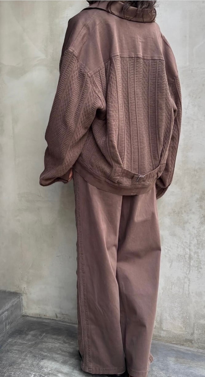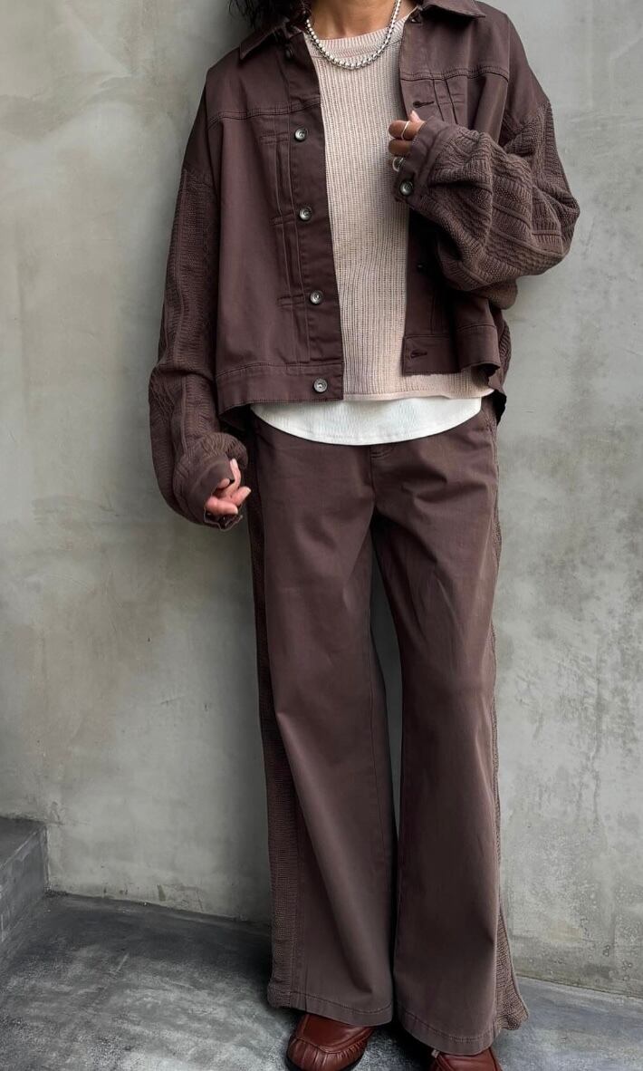 布帛とニットのコンビネーションが特徴の