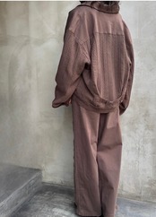 【flamingo firm】ニット切り替えラインワイドパンツ