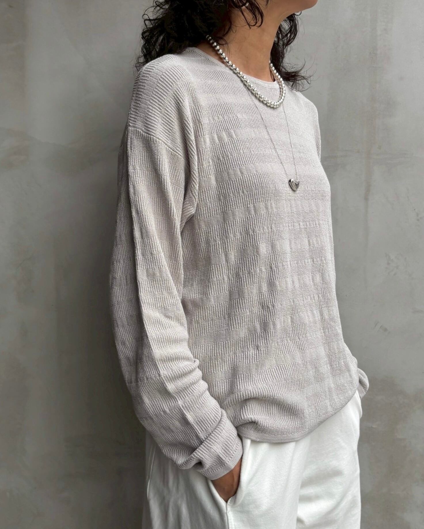 テンセル素材の柔らかなニットリブロンT。シンプルなデザインで1枚でもレイヤードスタイルでも活躍してくれる1枚です。