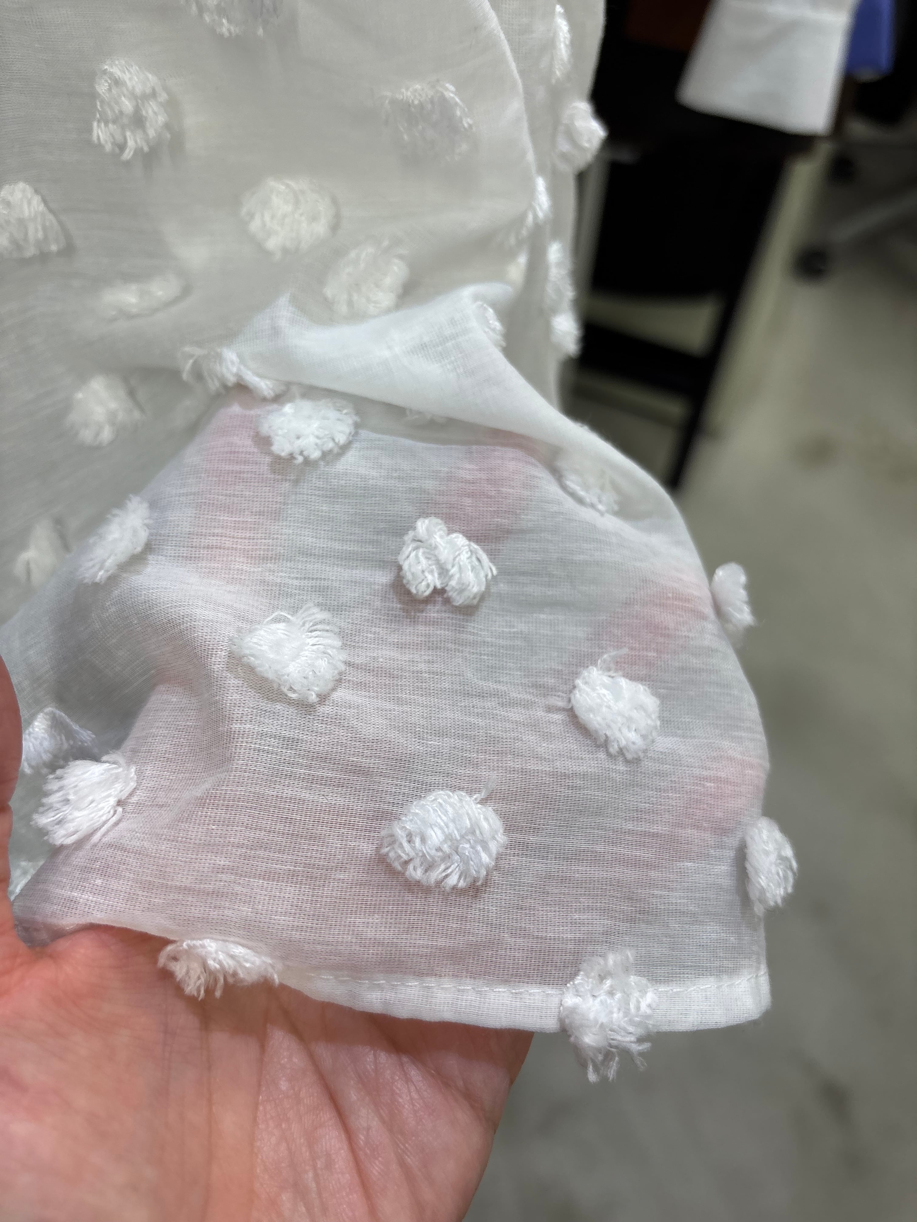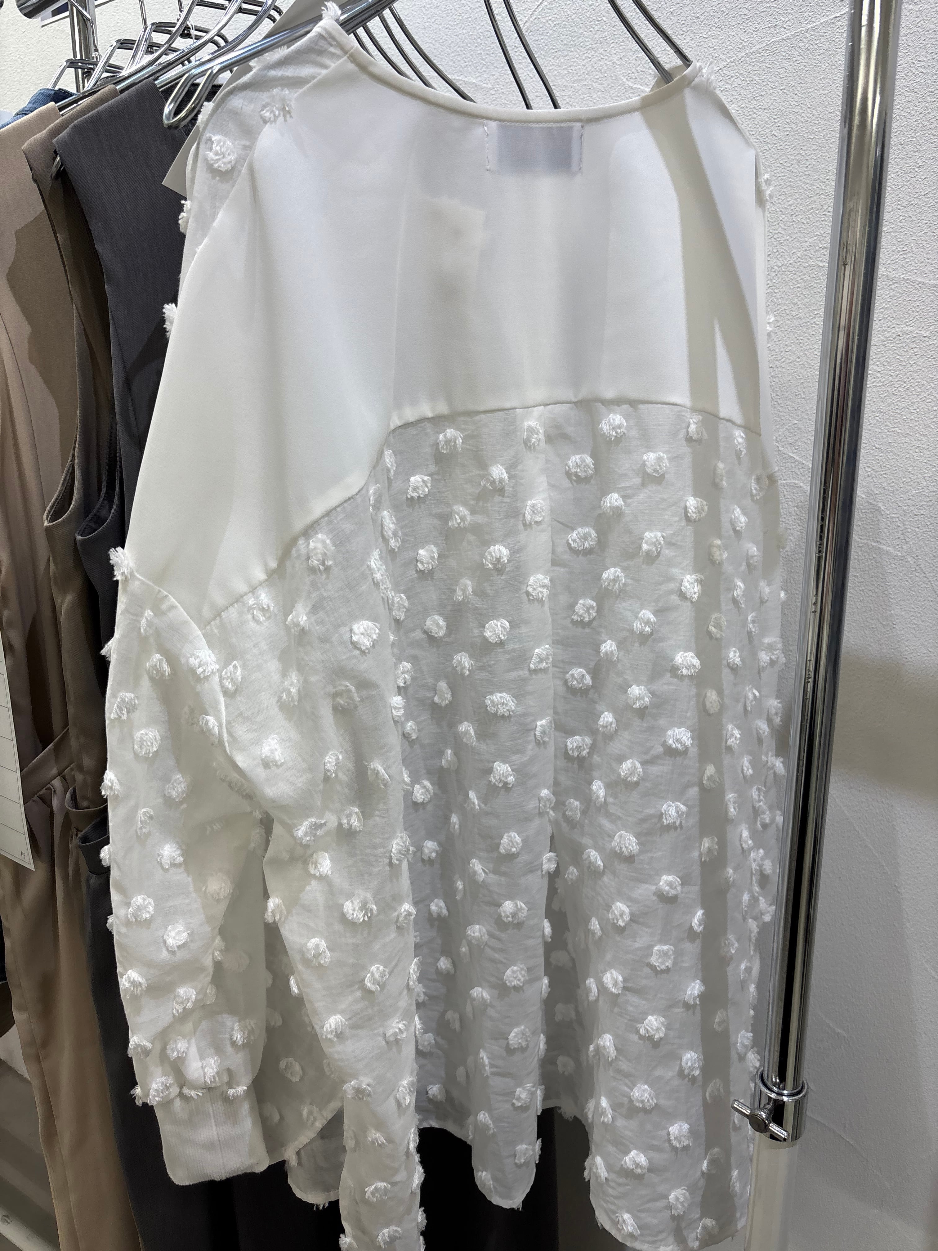 立体的なドットがかわいいブラウスです。