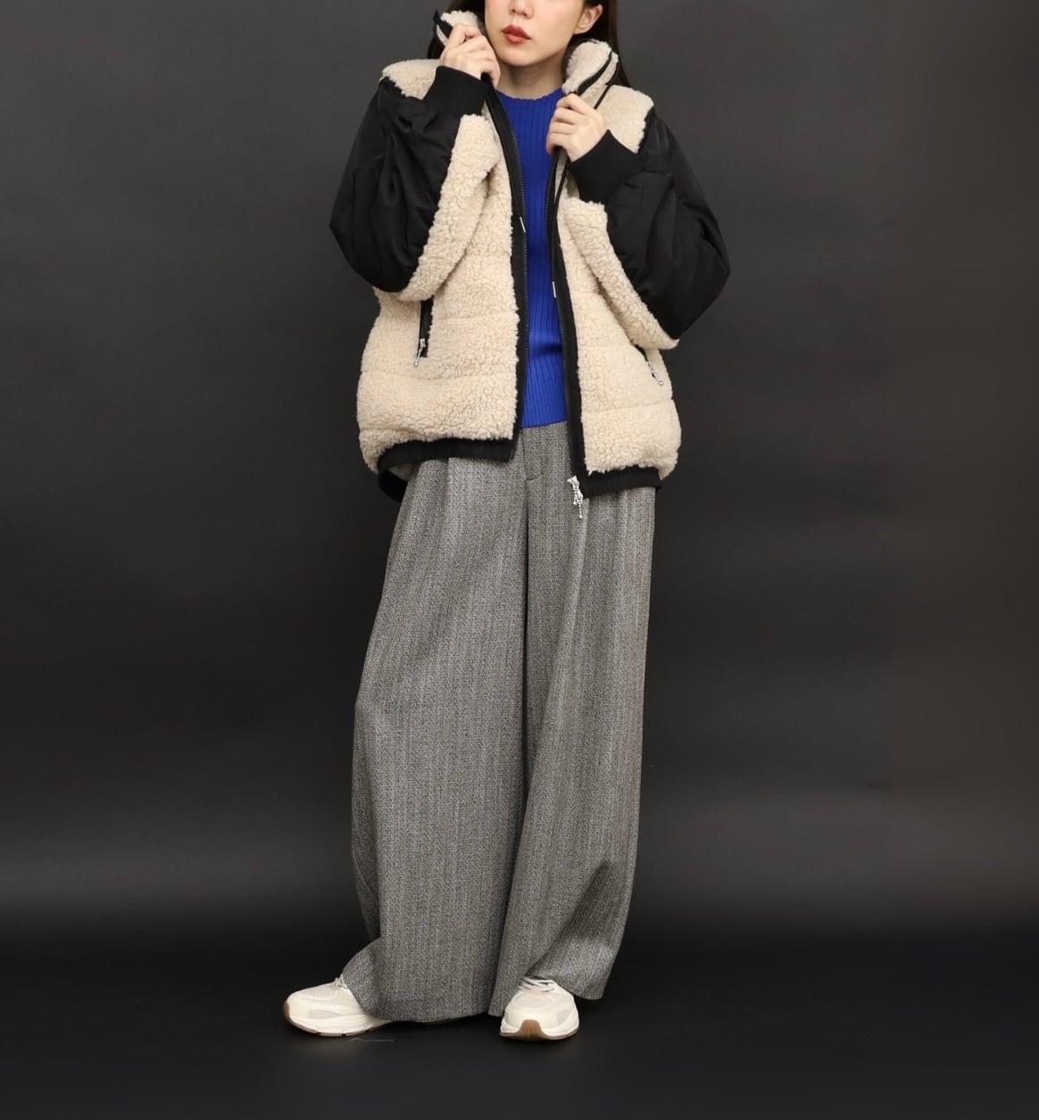 中綿とボアで暖かさを保ちながら、スタイリッシュな印象を与えてくれる一着です。