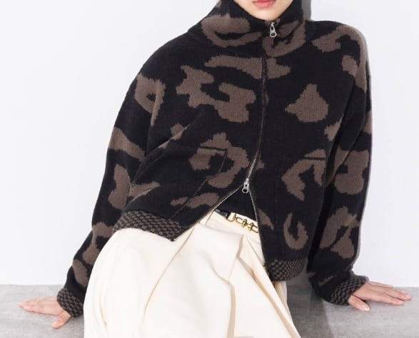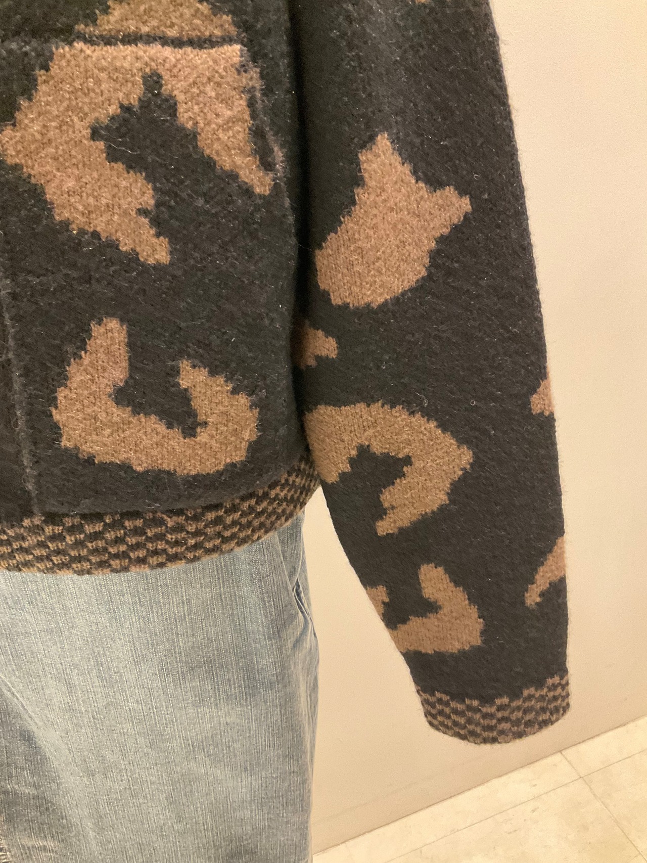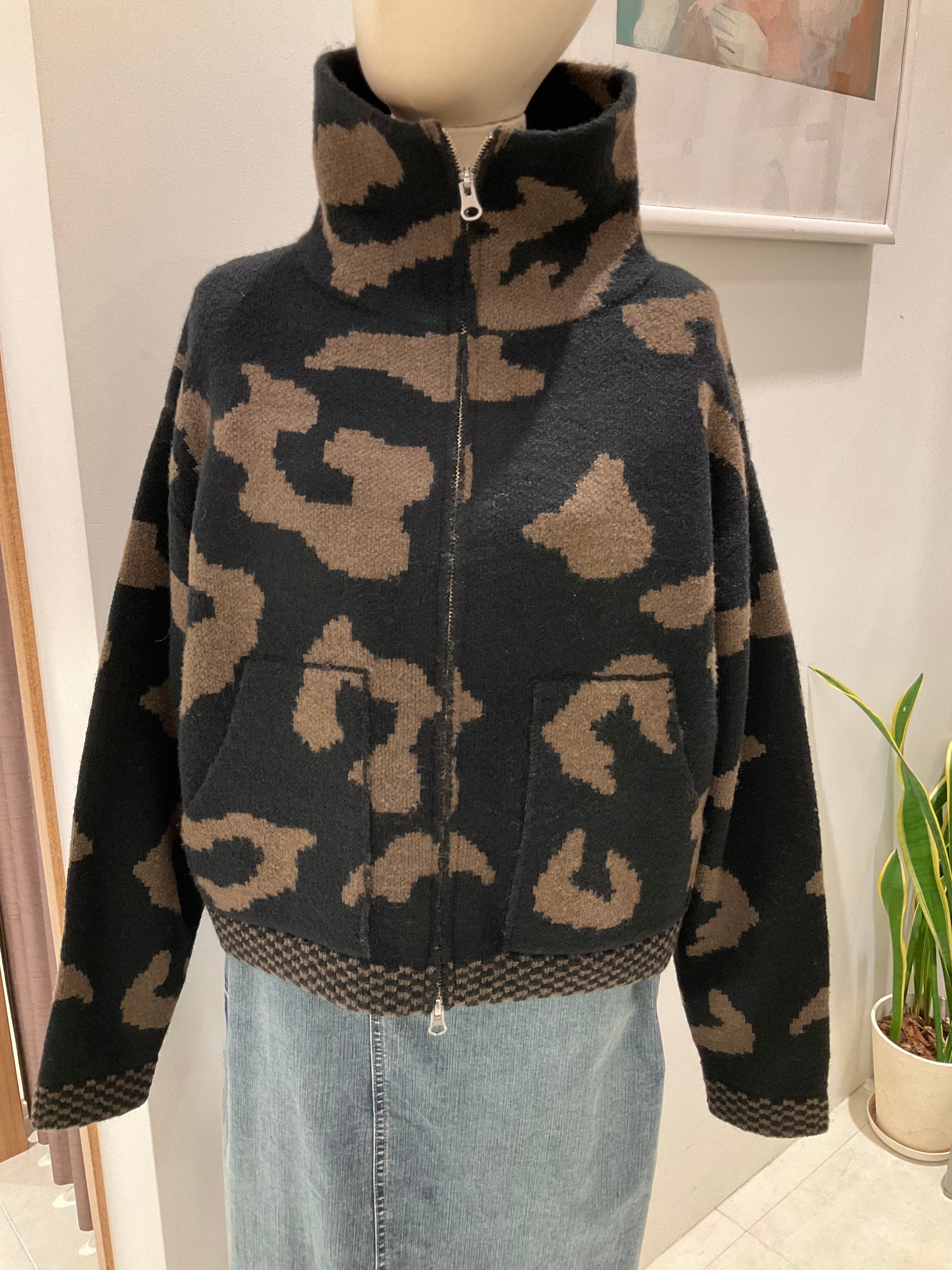 トレンドのレオパード柄が目を引く、個性的なニットジップブルゾンです。
