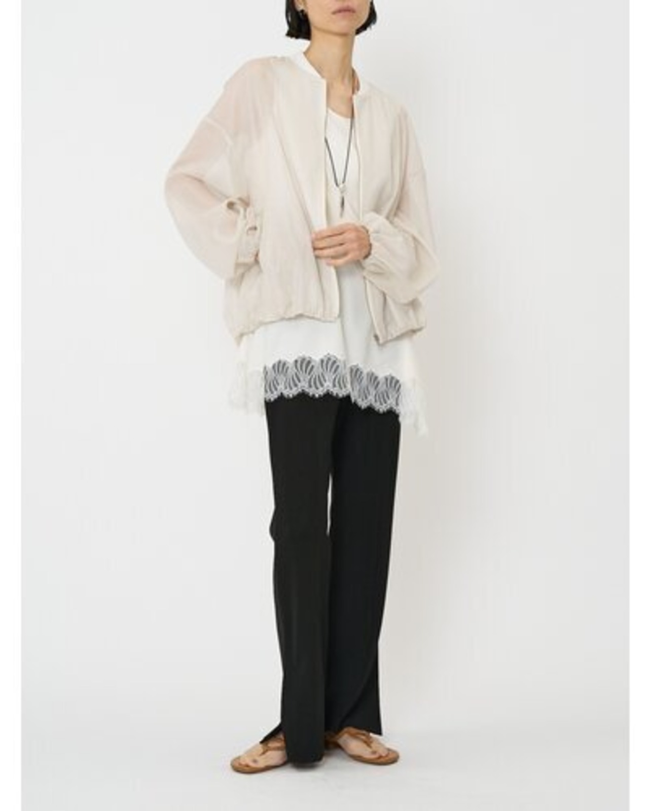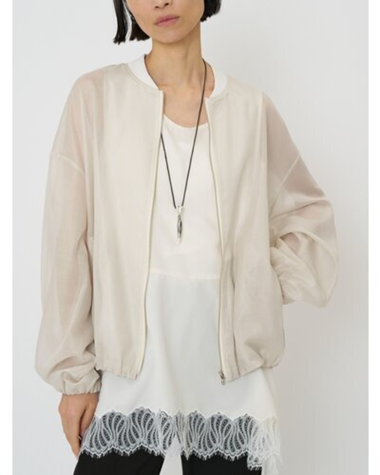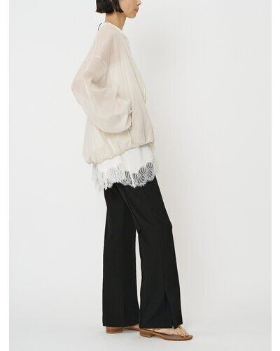 シアー素材なので程よい抜け感もあり、Tシャツやデニムといったカジュアルなアイテムに合わせるだけで、