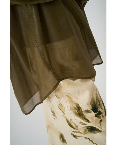 オーガンジー特有の繊細な透け感に光沢加工を施した、上品なツヤ感を持つ素材を使用しました。