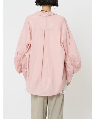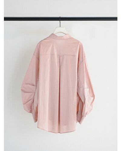 袖の前後に入ったタックで作る立体的なボリュームスリーブが、横顔までかわいい、春らしいクリーンなシャツです。
