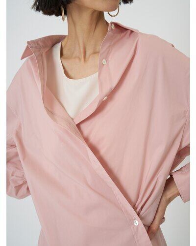 前立ての一番下のボタンホールを使うとカシュクール開きが広く作れ、抜け感あるリラクシーな雰囲気に。