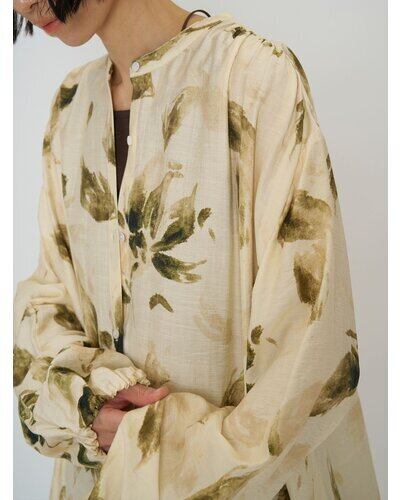 さらりとした素材感とゆとりのあるシルエットで、袖口にはさりげないギャザーを寄せ、ボリュームのあるスリーブが女性らしい柔らかさをプラス。