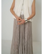 ウエストから入った繊細なプリーツは、裾に向かって自然に消えていくデザインで歩くたびにふわりと広がるシルエットが、シアー素材の魅力を引き立てます。