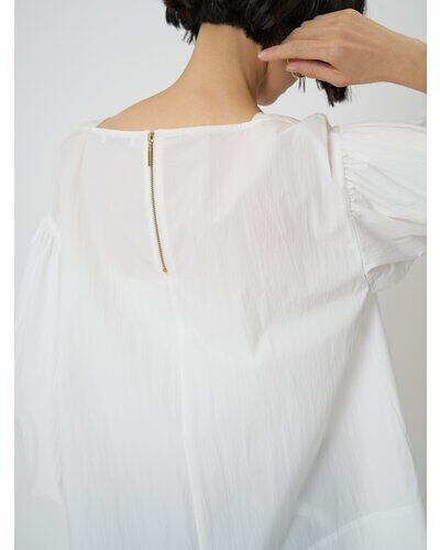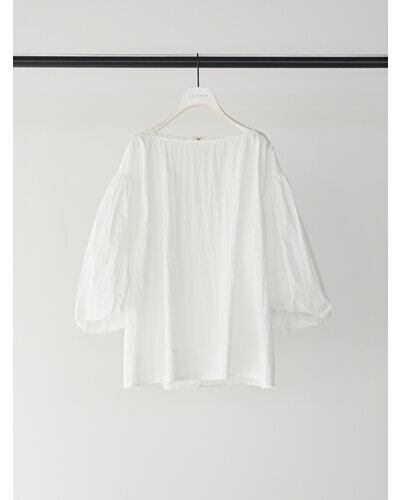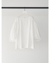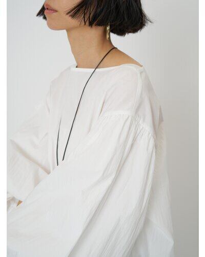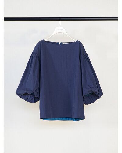 潔いスラッシュドネックと、ボリュームたっぷりのバルーンスリーブとのコントラストがキャッチーな、1枚で映えるプルオーバーです。
