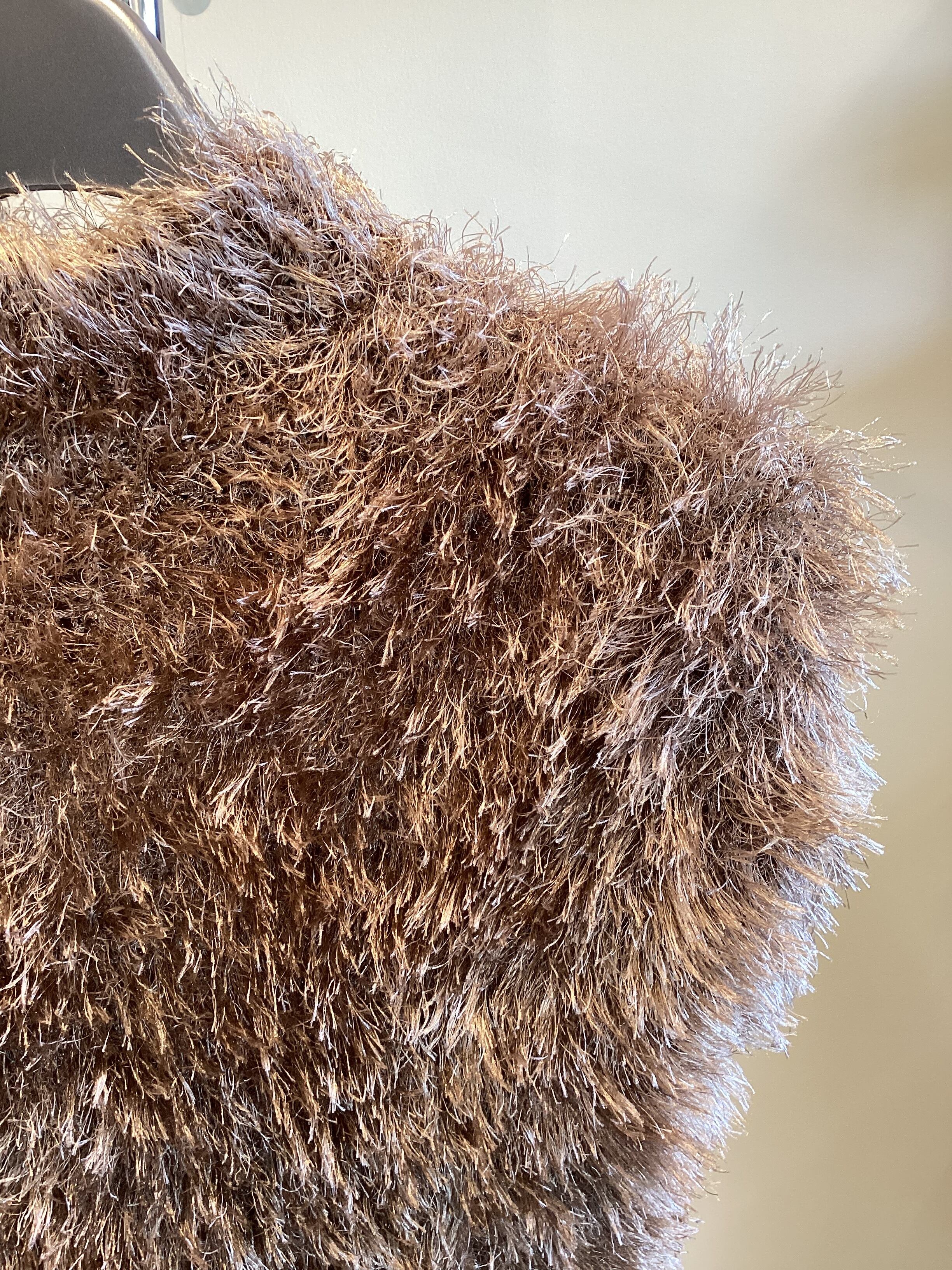 毛足の長いファー素材を贅沢に使用したこのベストは、ハイネックデザインで洗練された印象を与えます。伸縮性があり、着心地も抜群です!