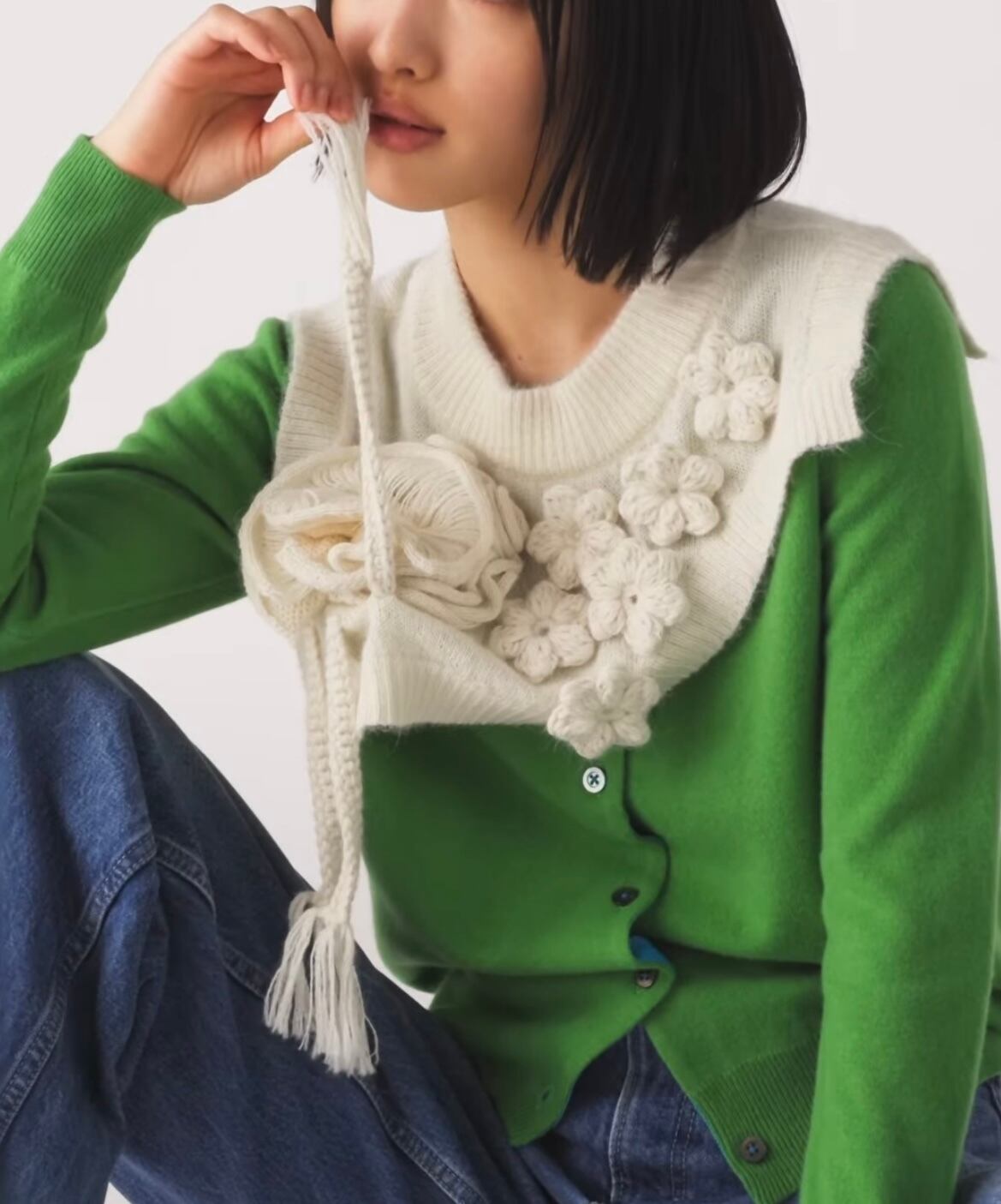 1枚重ねるだけで、旬なレイヤードスタイルが完成。アクセサリー感覚で合わせやすく、アルパカ100%で肩周りも暖かいので、これからの季節にぴったりです!1枚あるとコーディネートの幅が広がります。
