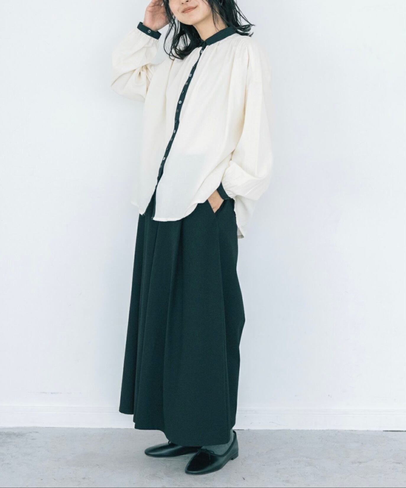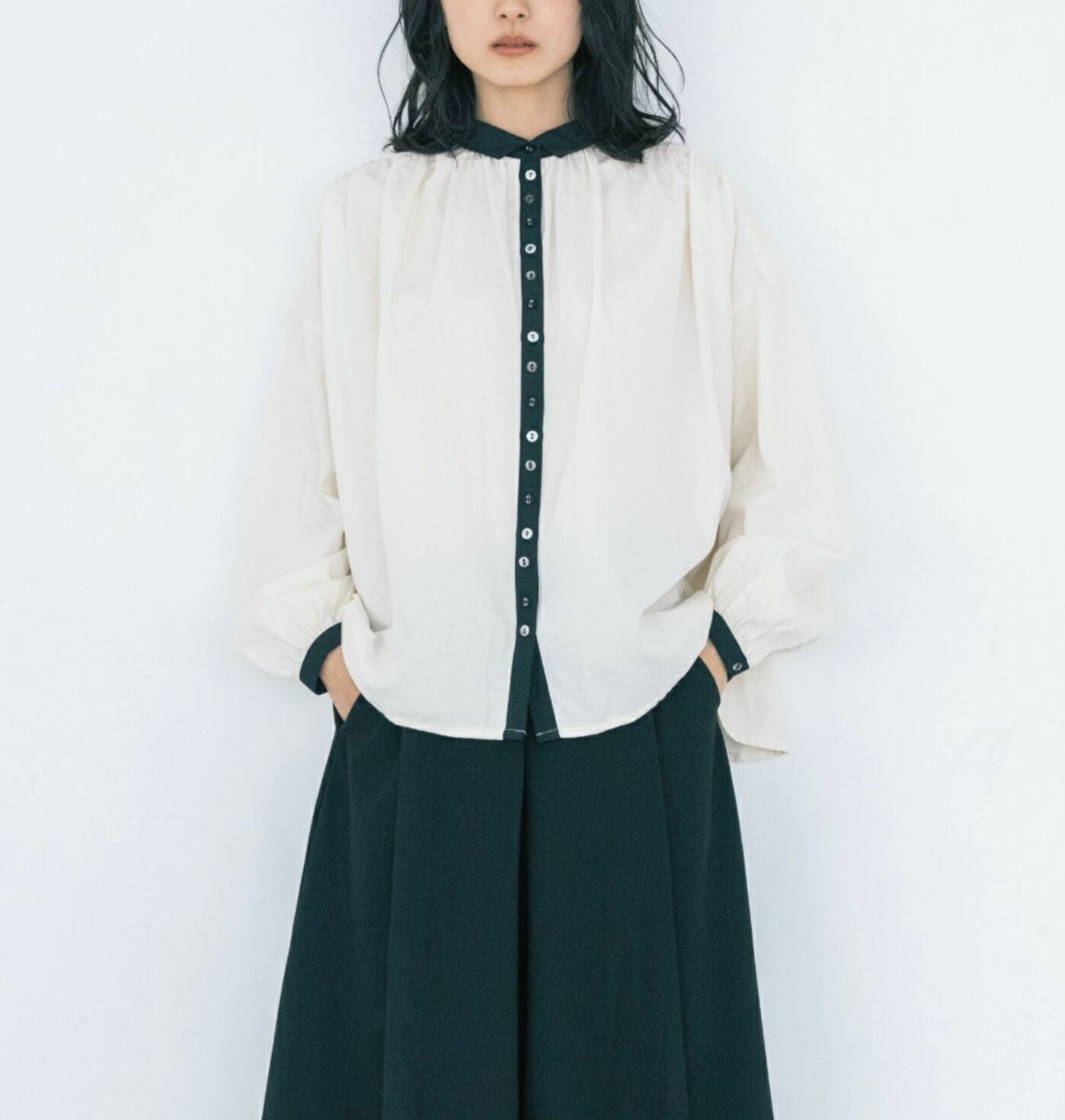 ディティールをブラウスに落とし込みました。