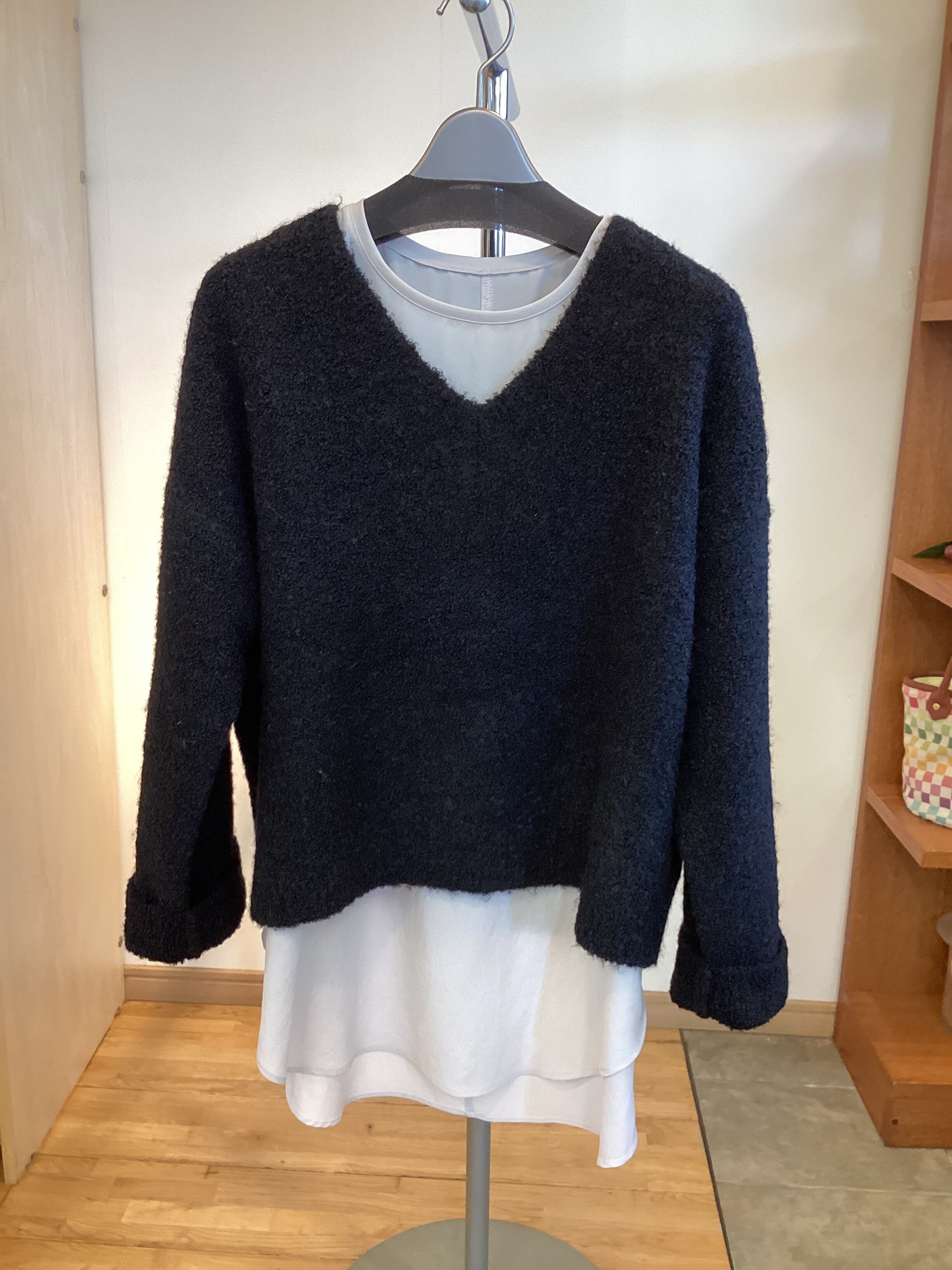 ふんわりもっちりしたVネックセーター。