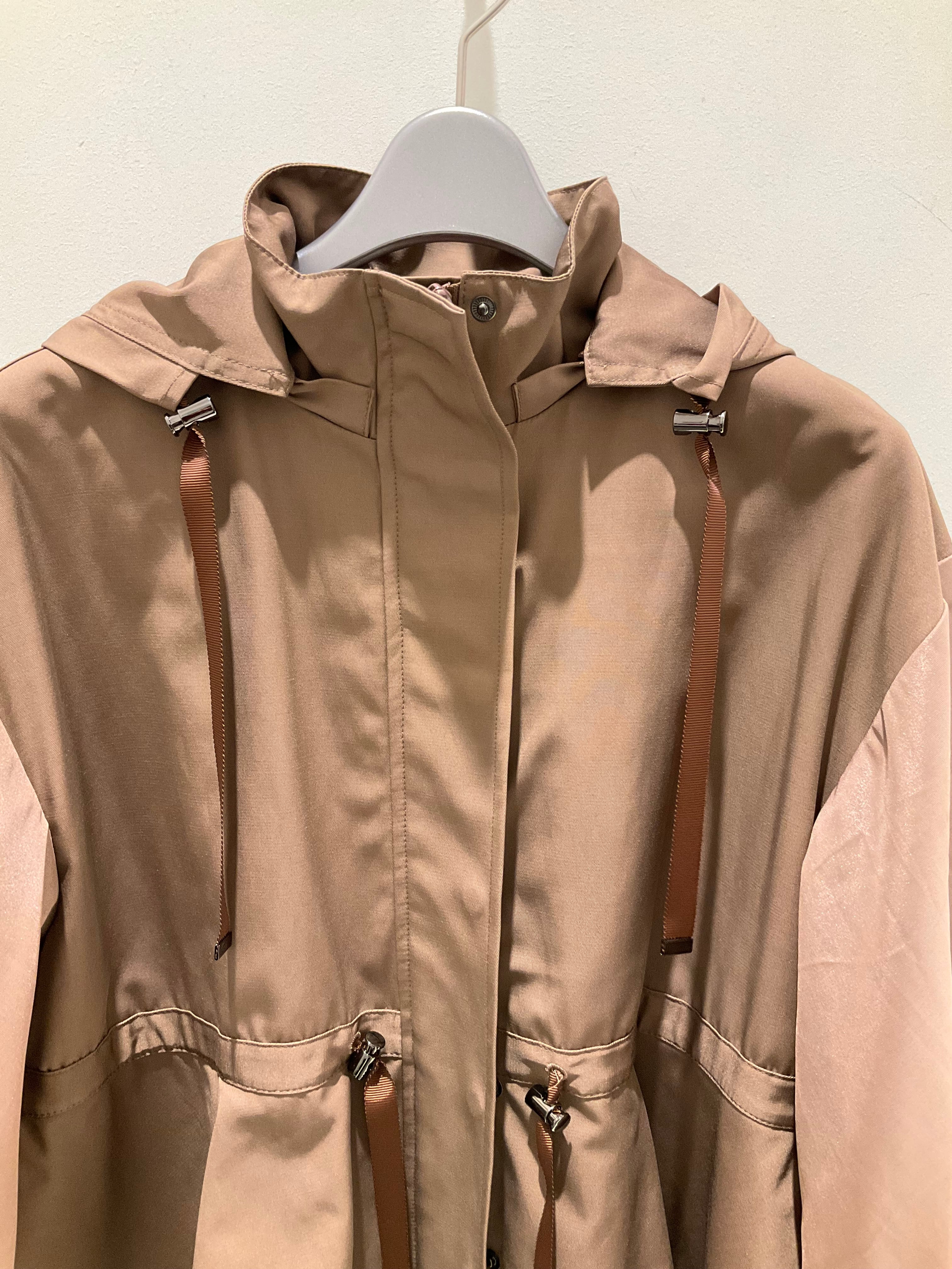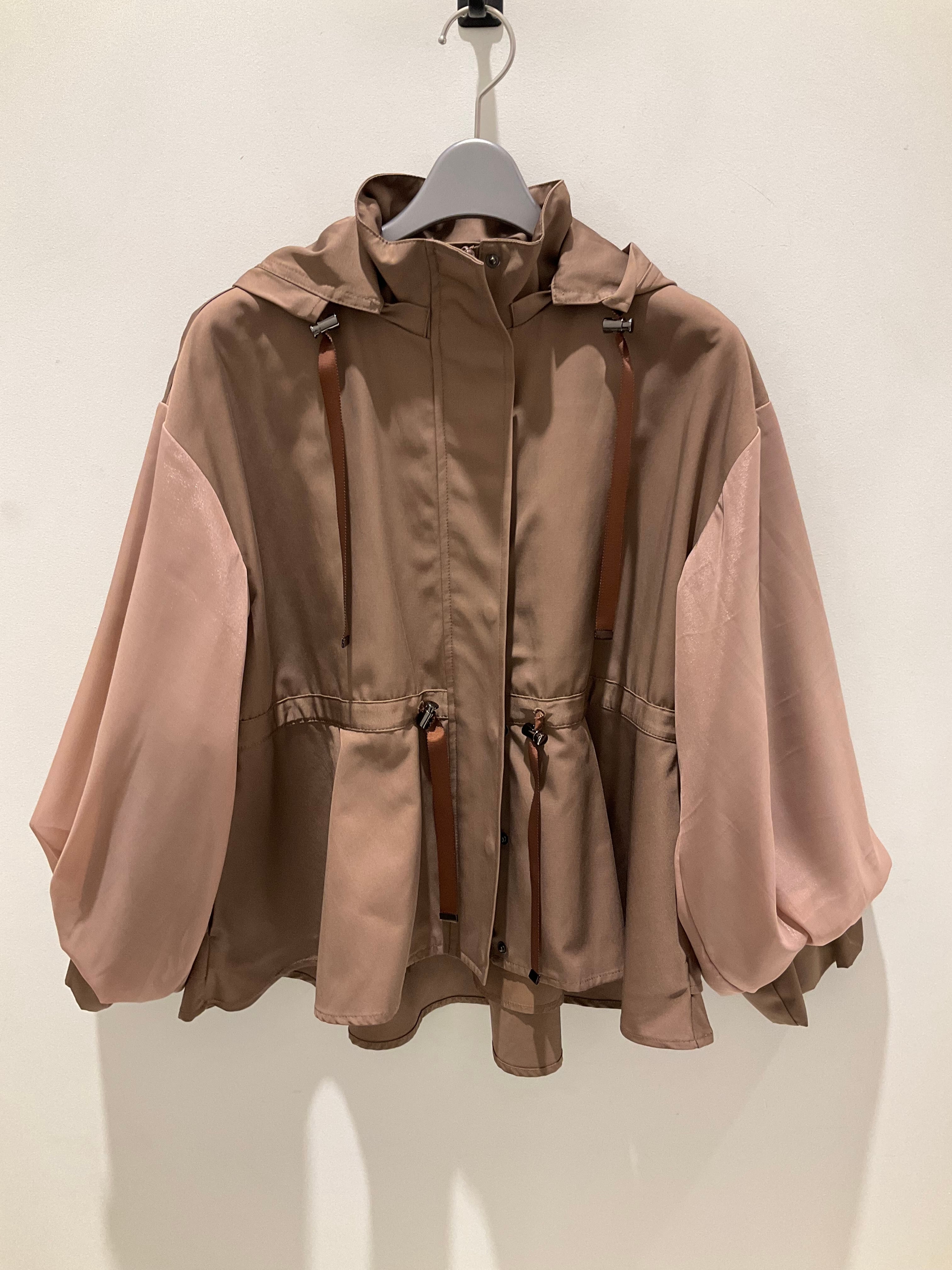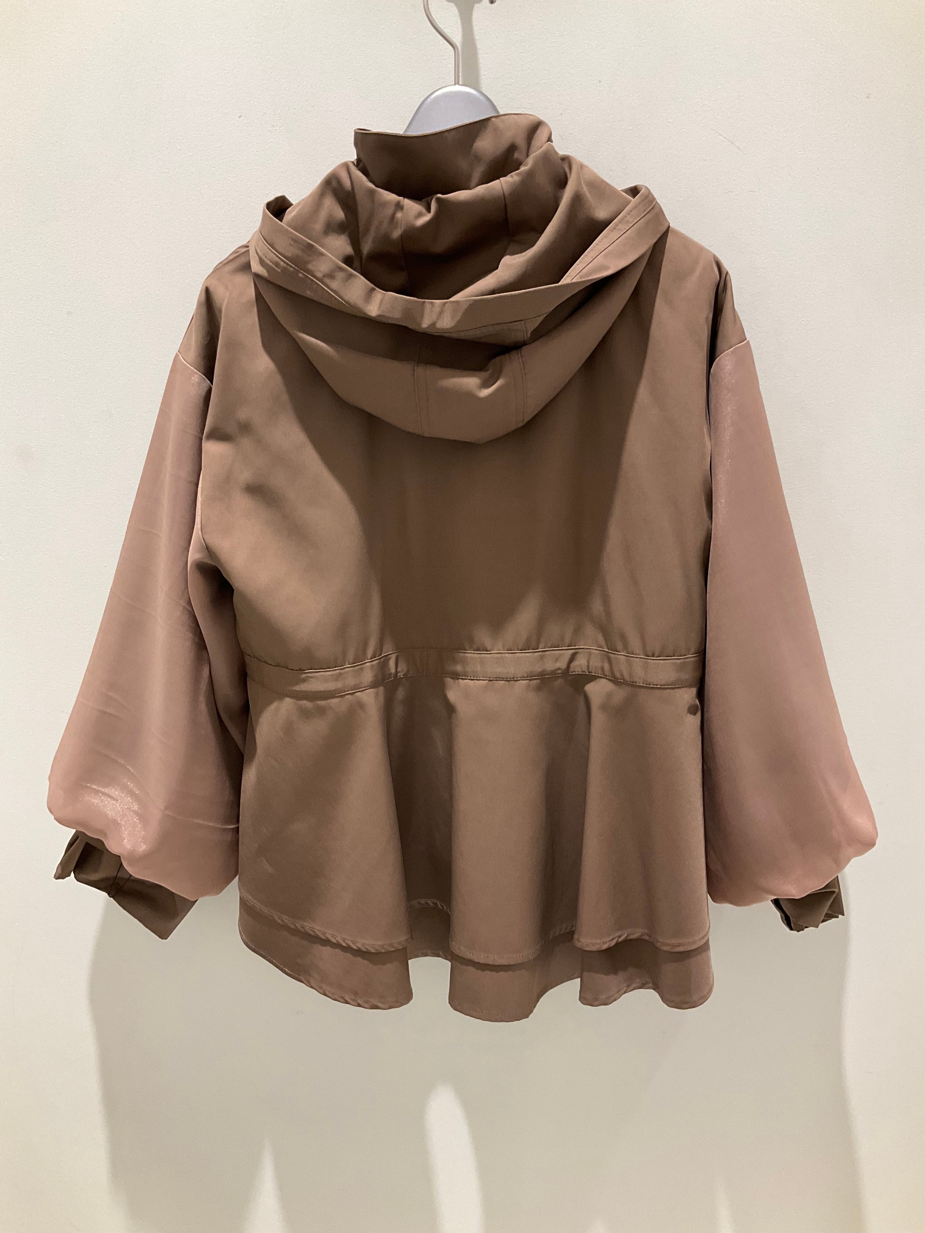 【PRIORITY】袖チュール/機能性素材zipパーカー