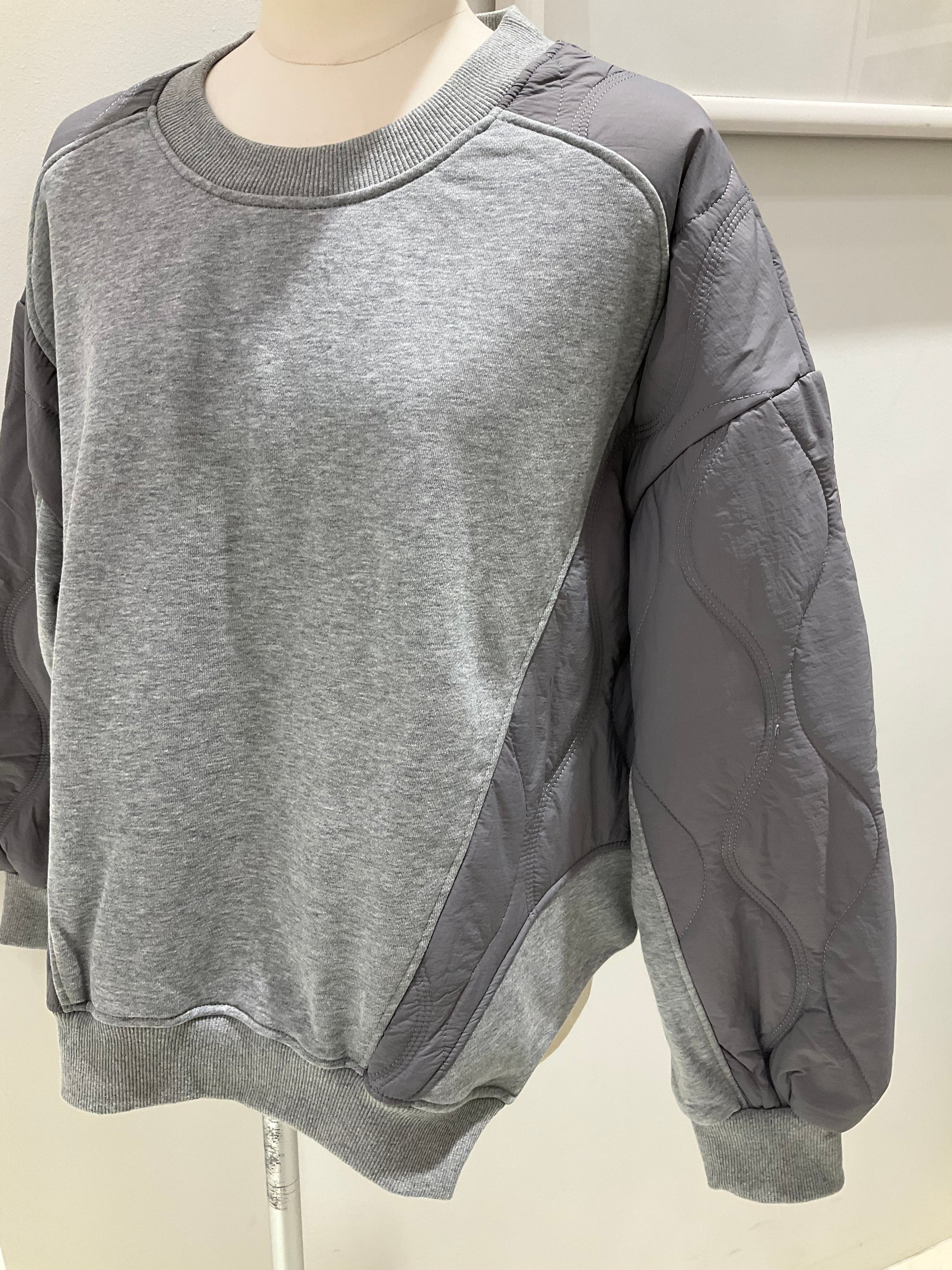 【Praia】キルティングコンビネーション/サイドスリット プルオーバー