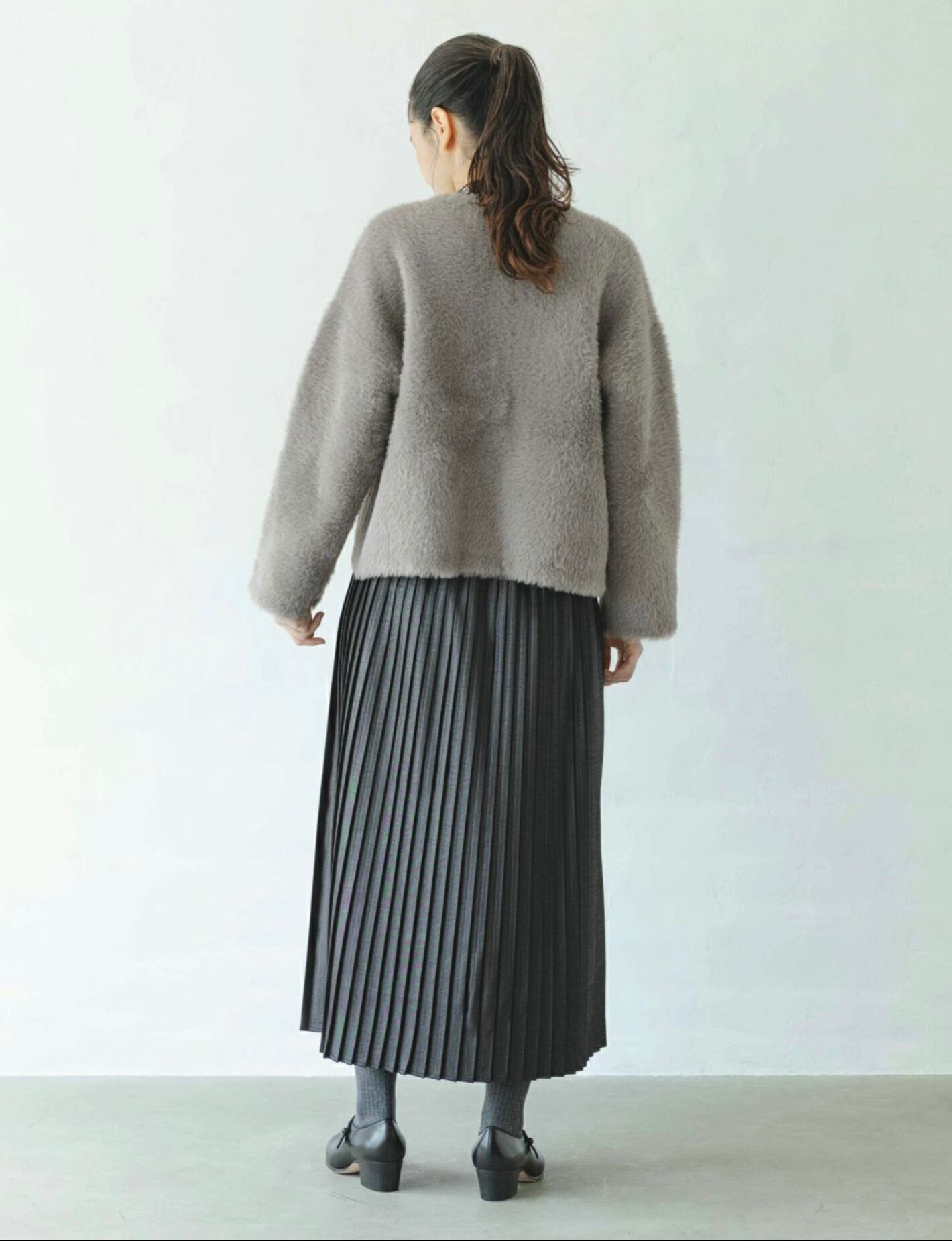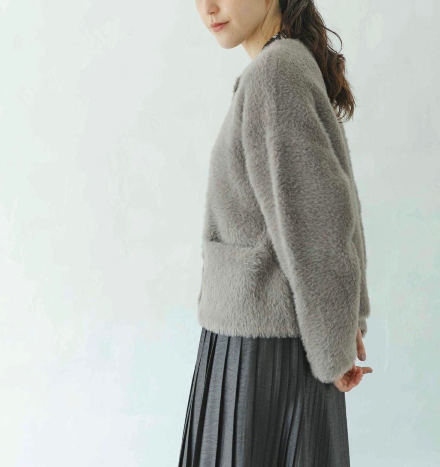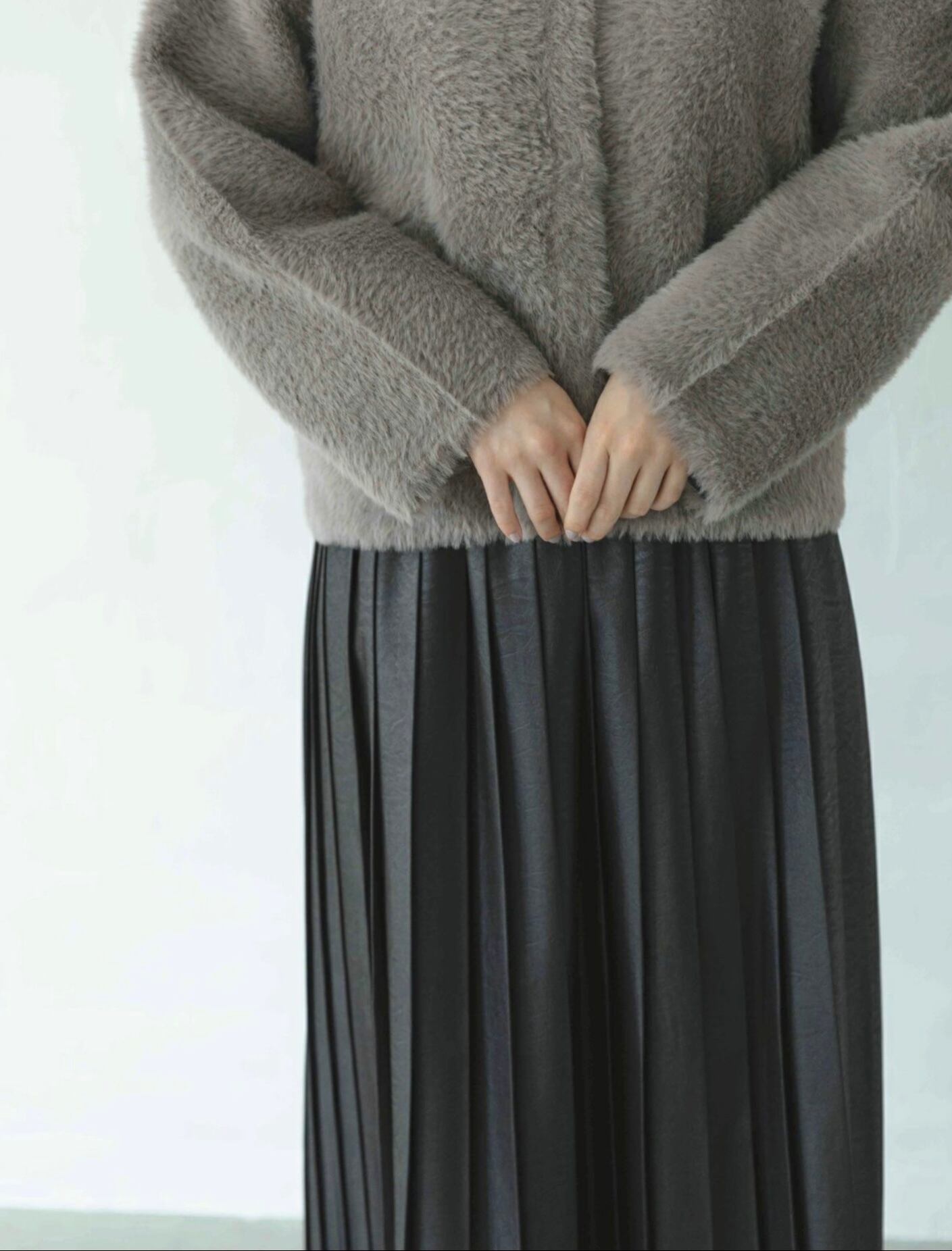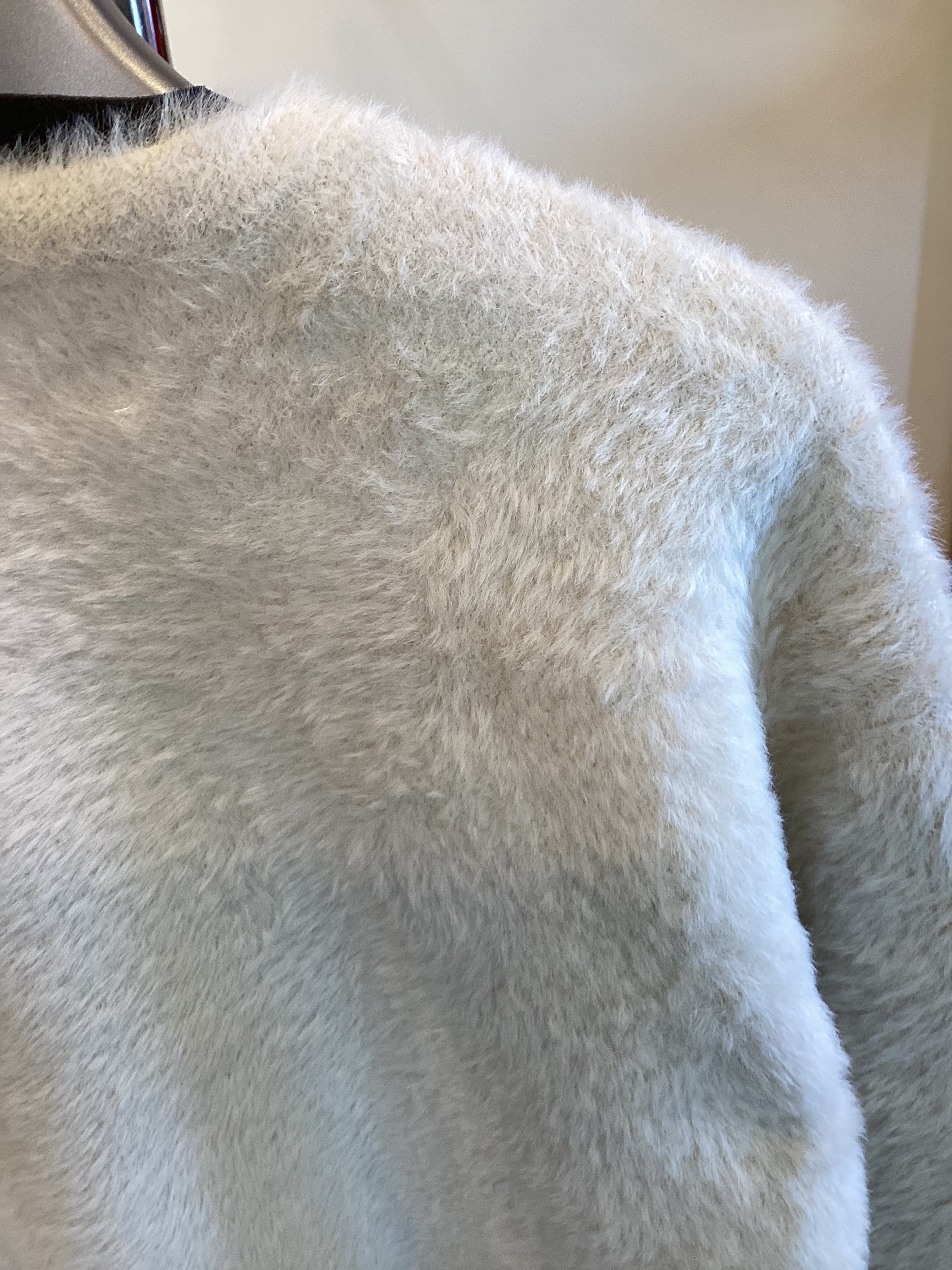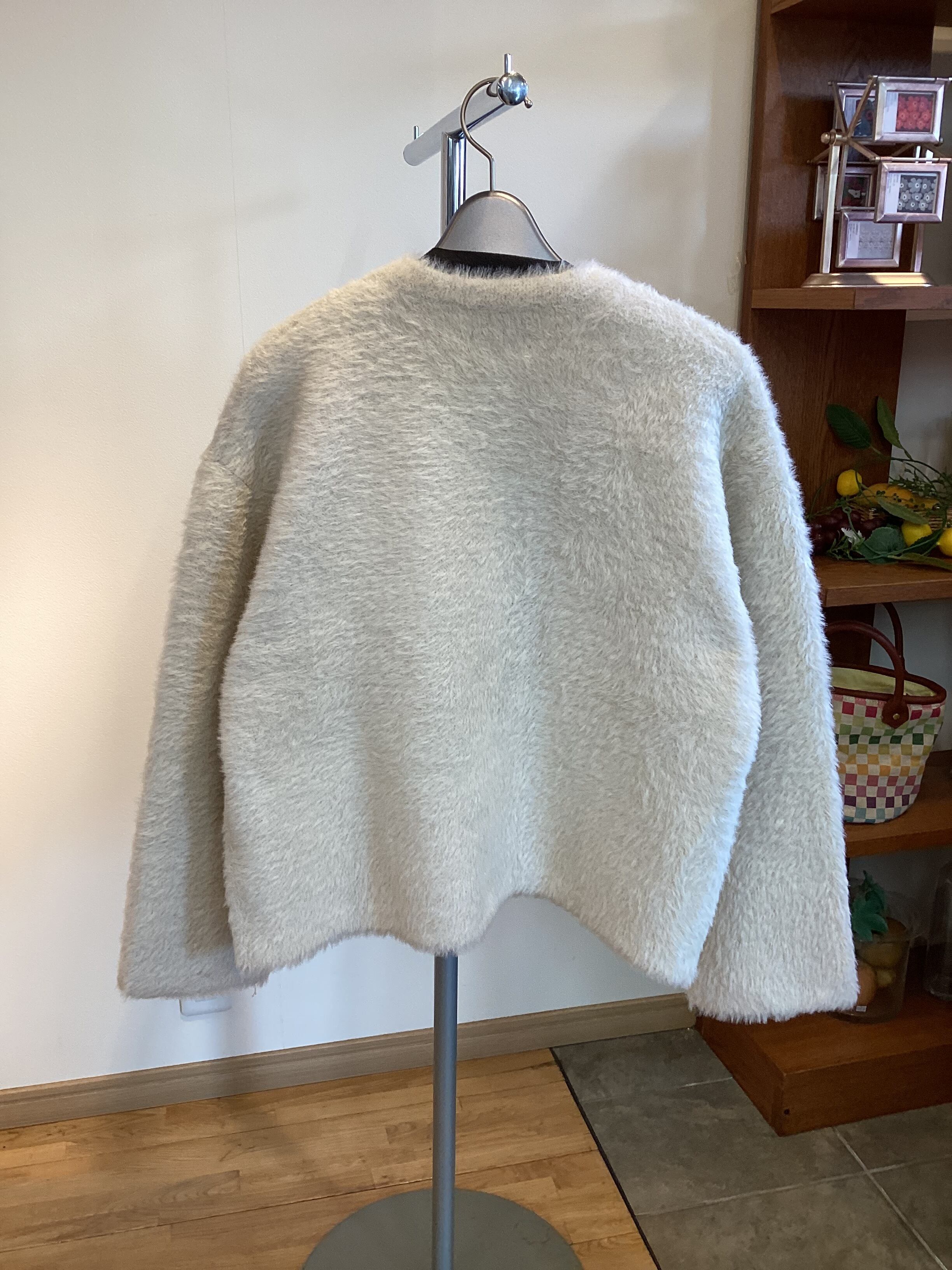 フォックス風の毛足のある糸を使用したニット。