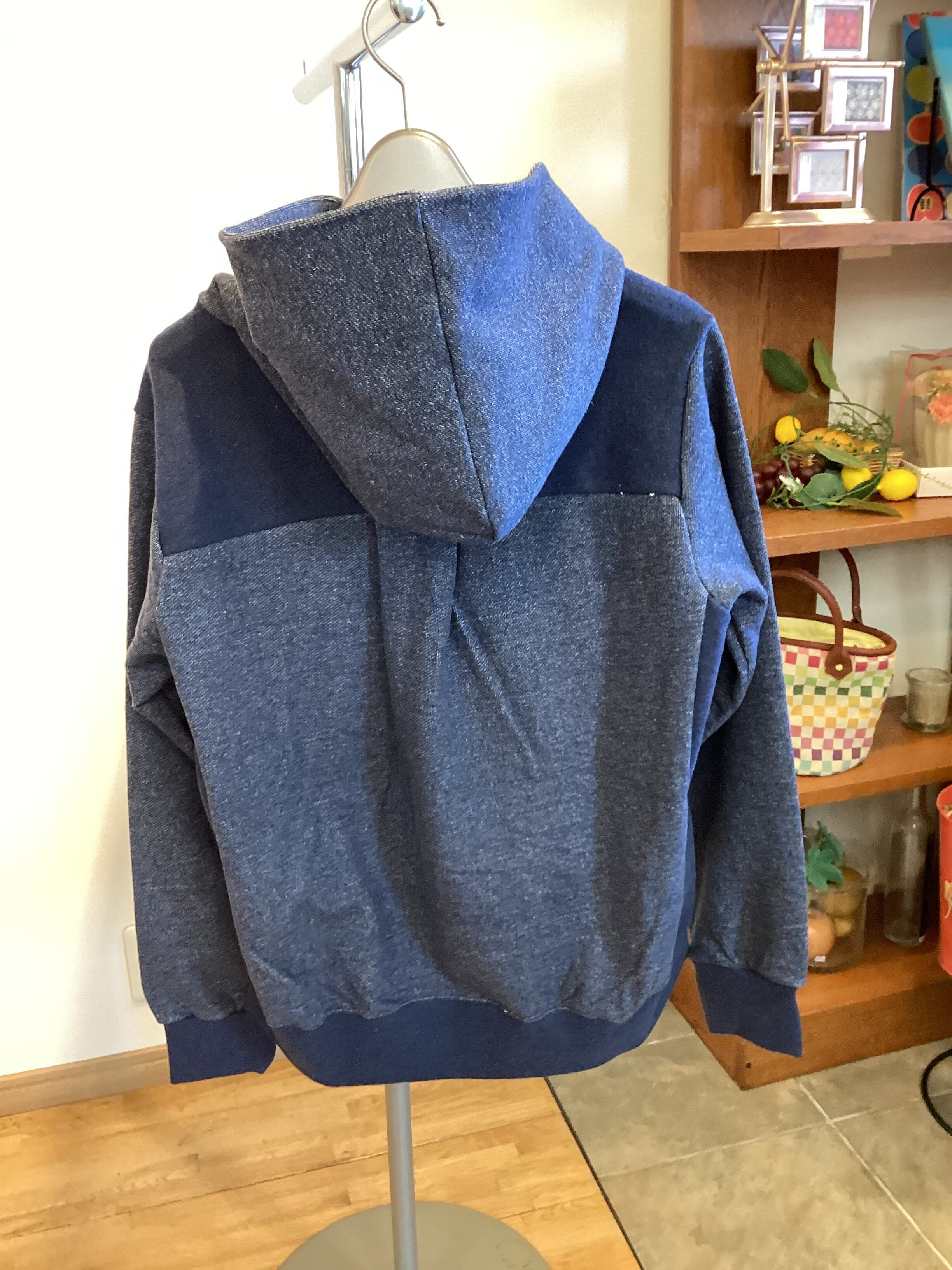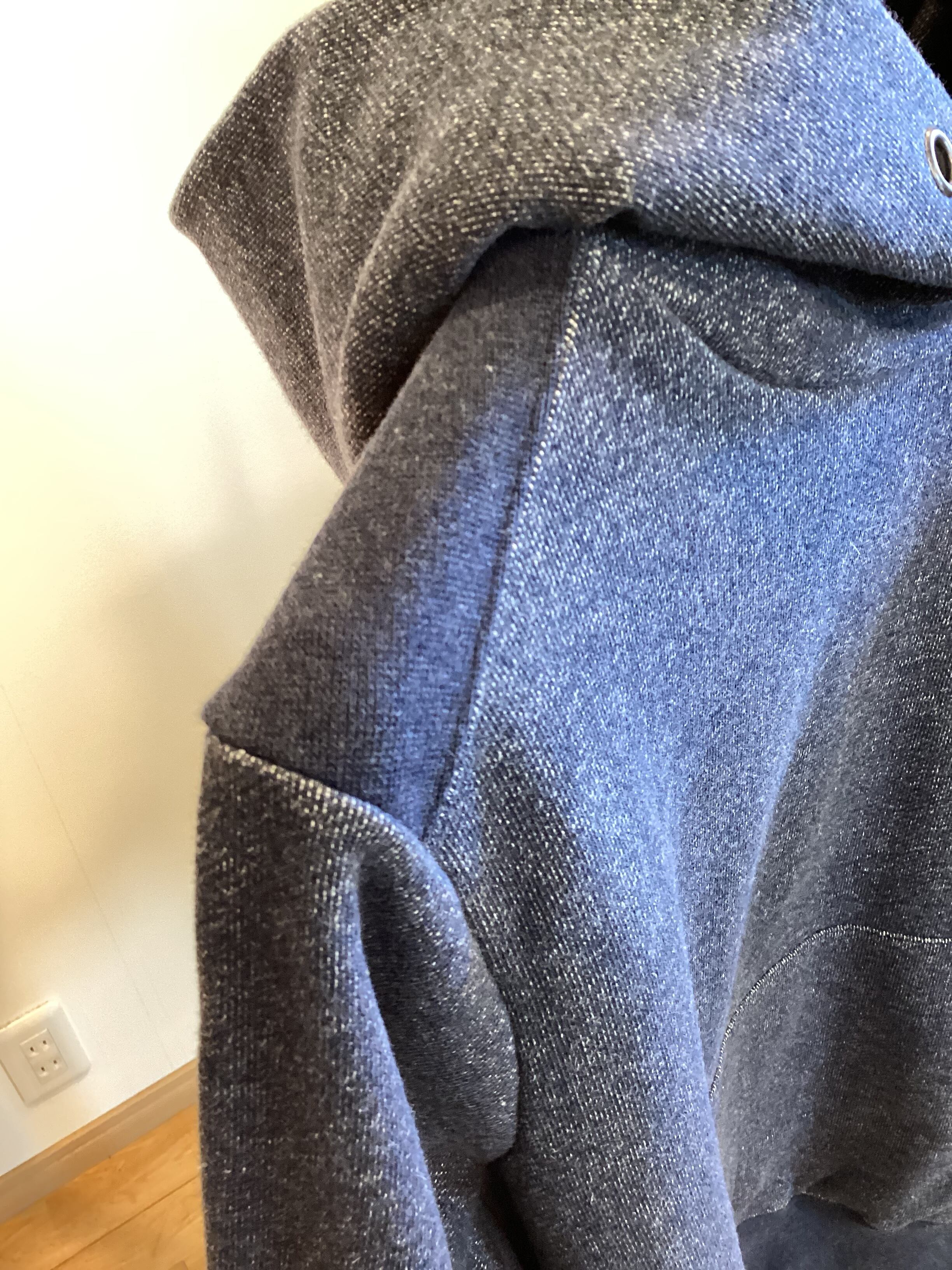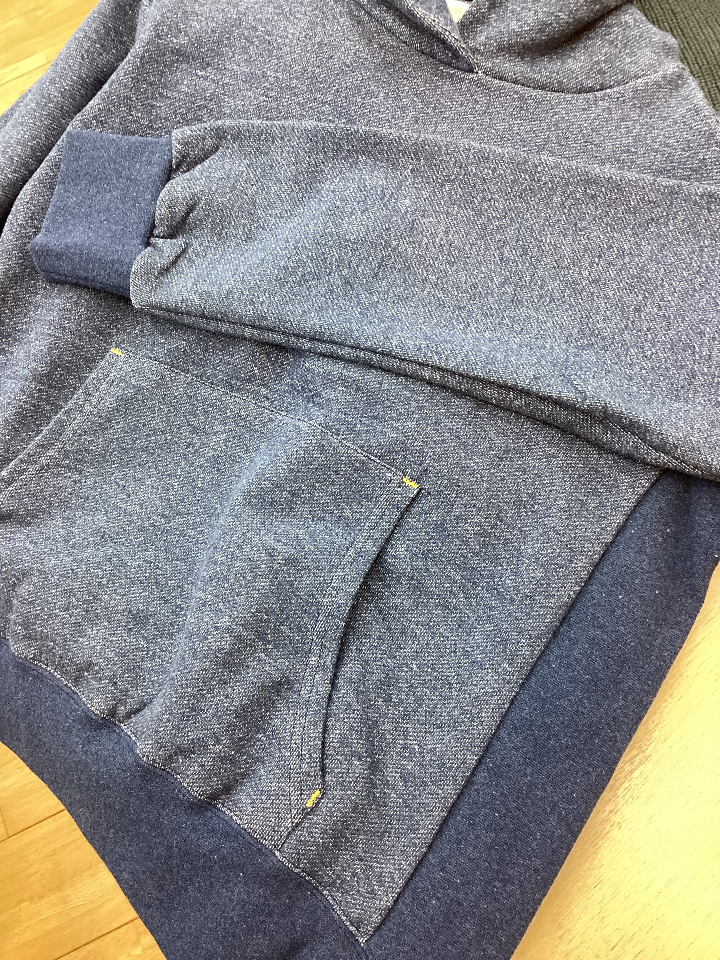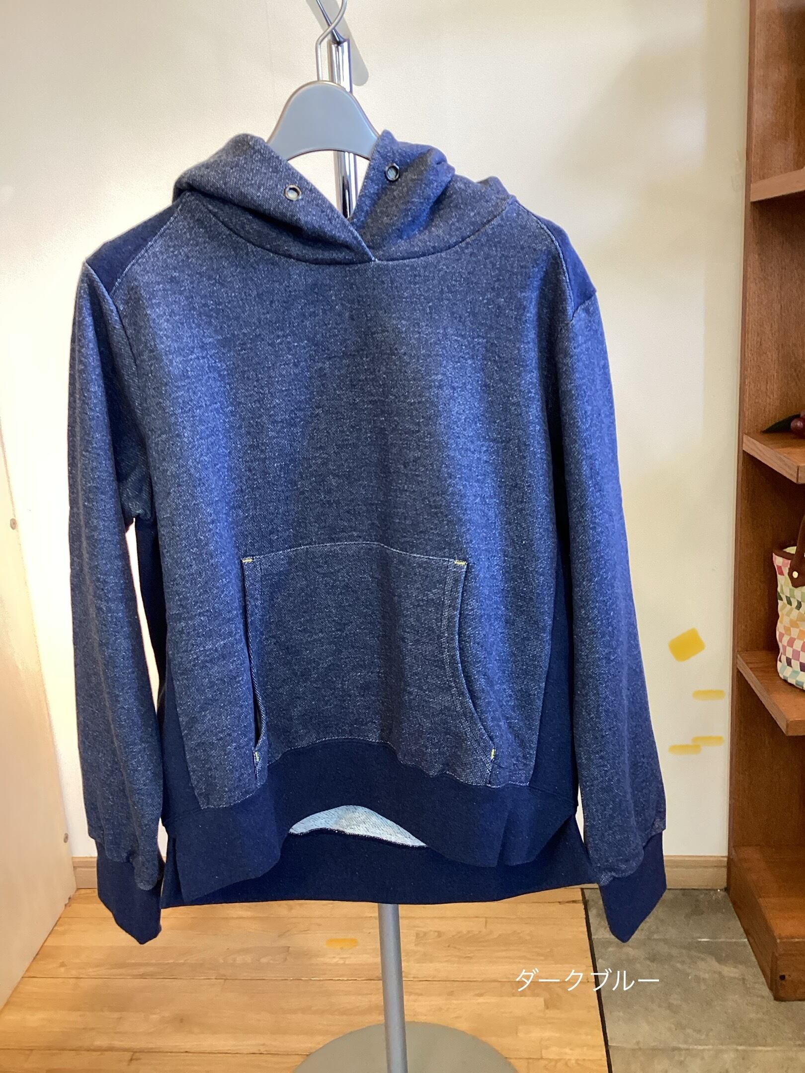 インディゴ染めの味のある風合いが素敵なフーディ。肩や脇の部分の切り替えがポイント。1枚でこなれ感を演出。カジュアルながらも洗練された雰囲気で、デイリースタイルにピッタリです!