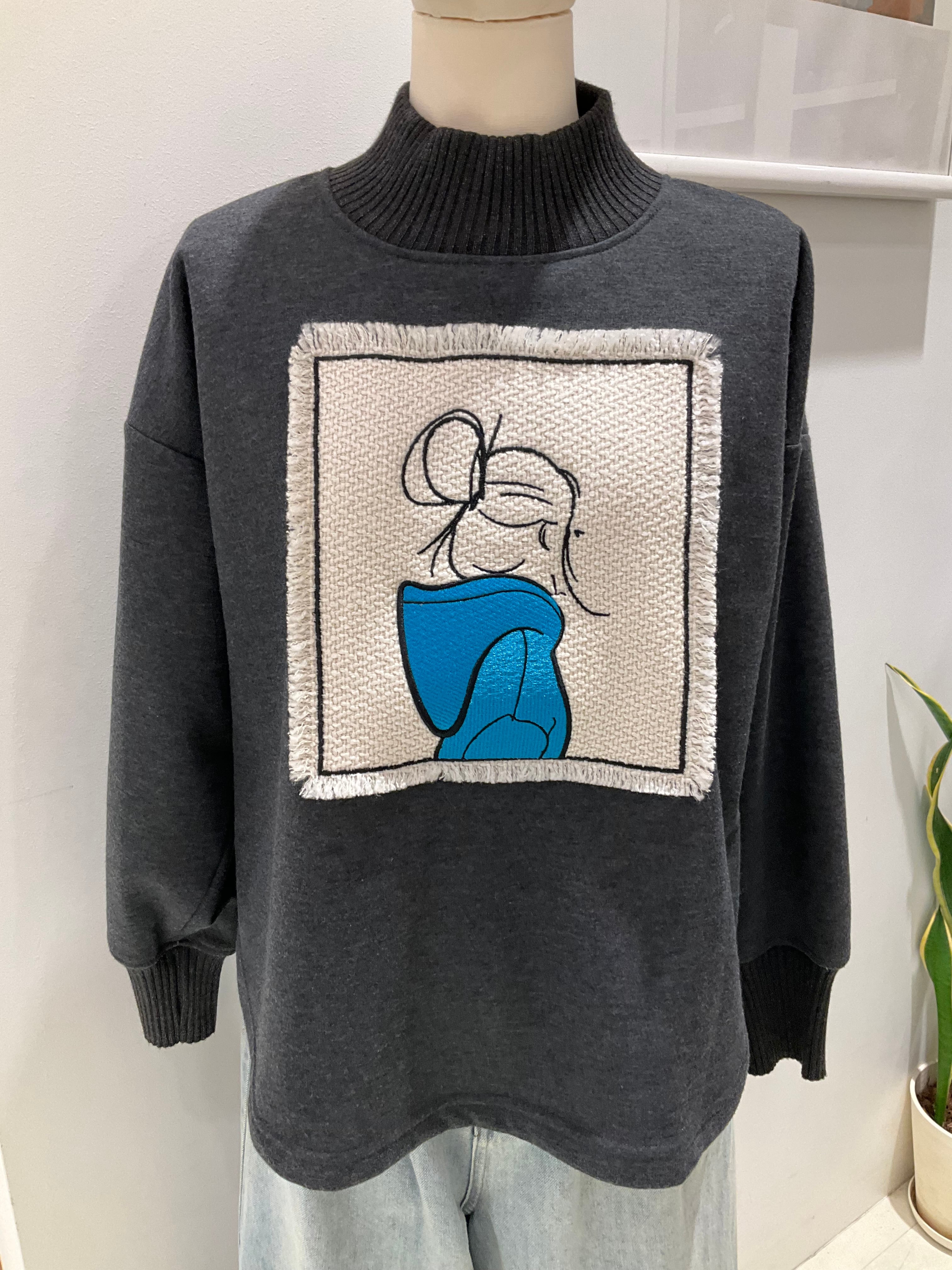 【RESPIGHI】芝生刺繍裏起毛トップス