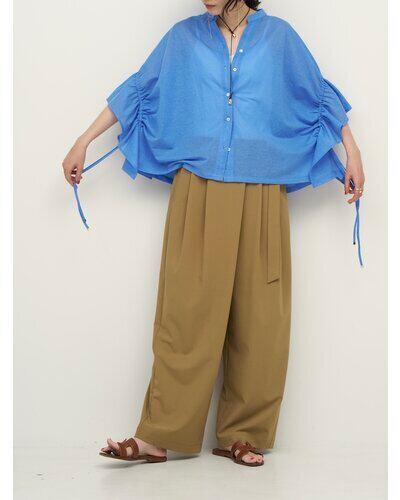 ベルトを見せるタックインスタイルがおすすめですが、生地が軽くウエスト周りがもたつかない設計なので、チュニックなど長め丈のトップスと合わせてもバランスよく履いていただけます。