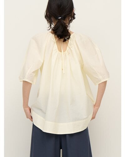 非常に軽く、薄い、速乾性の高い綿ナイロン素材を使用した、ギャザーブラウス。