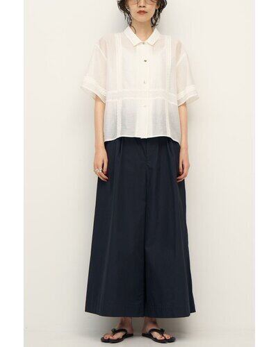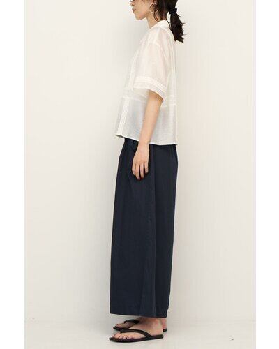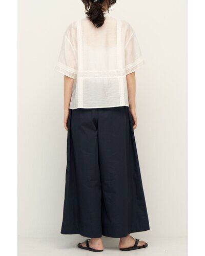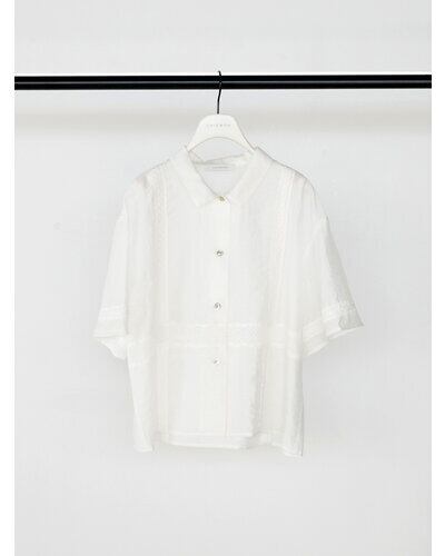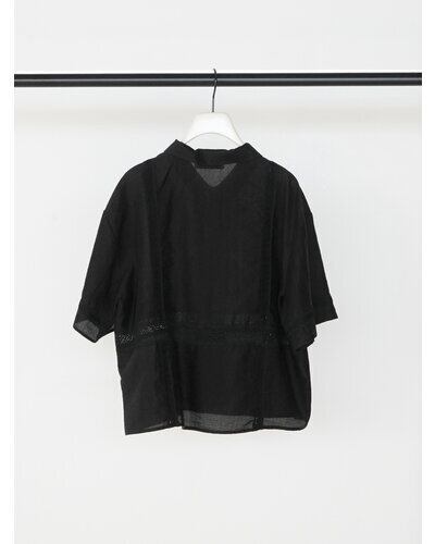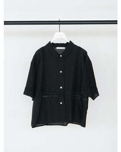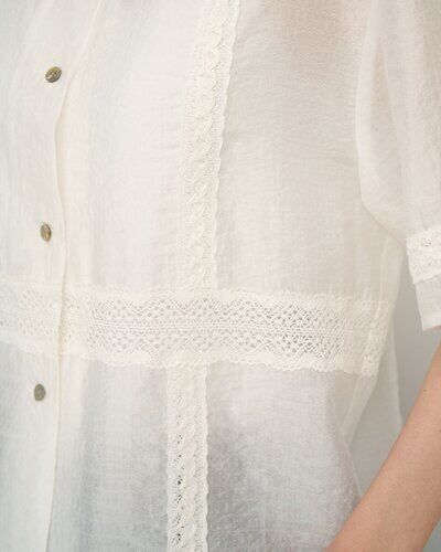 落ち感のある柔らかな素材に、繊細なレースをたっぷり施すことで、カジュアルなシャツアイテムでありながら上品な印象に。コンパクトなサイズ感なので、羽織りとしてはもちろん、1枚で着てもスタイリングがすっきりまとまります。
