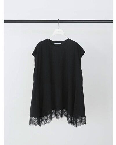 肌触りの良いカットソー素材に、レースを刺繍して組み合わせることで女性らしい華やかさをプラスしています。