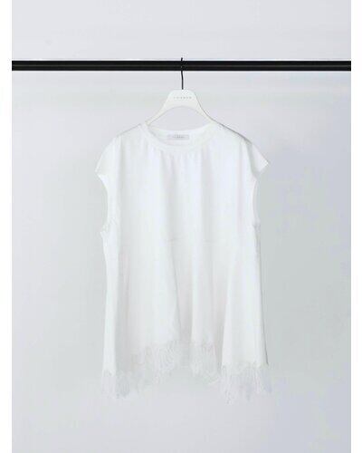 裾に繊細なレースをあしらった、上品なフレンチスリーブカットソー。