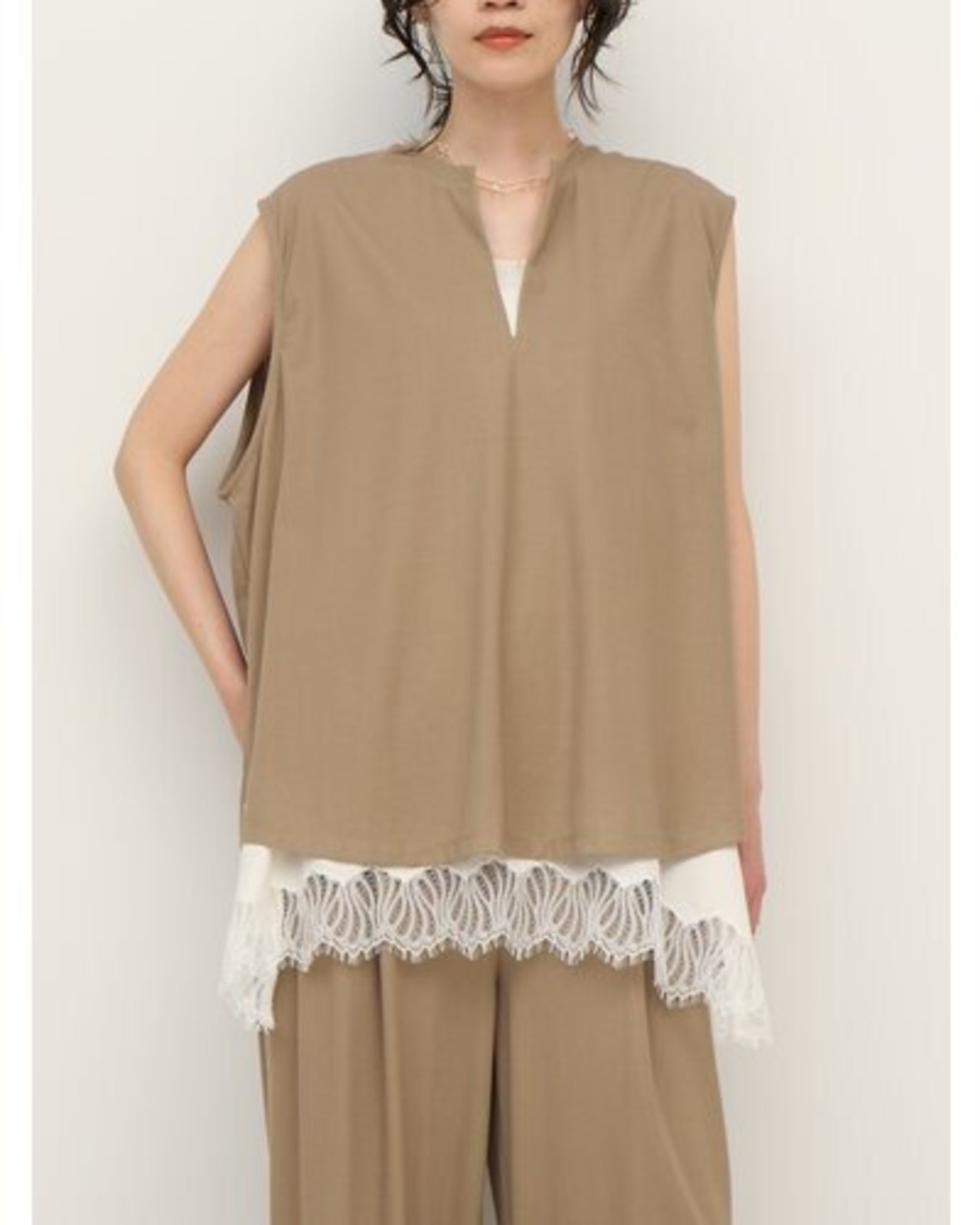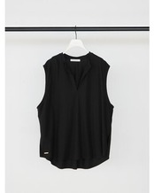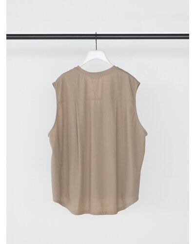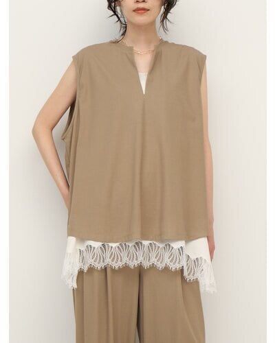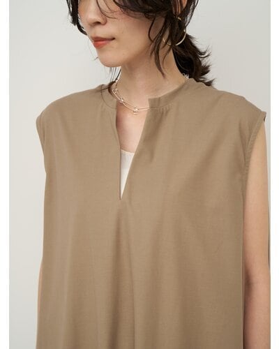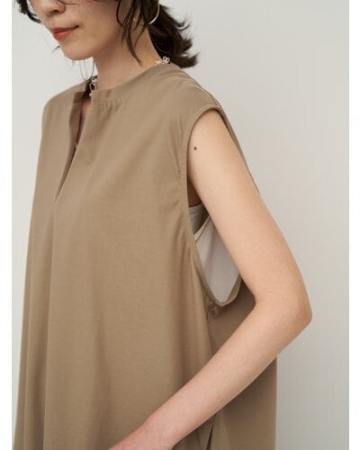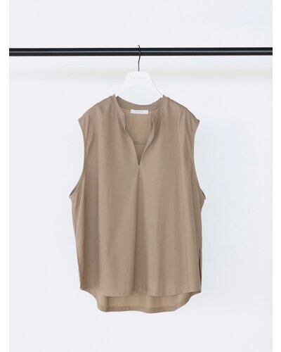 布帛見えするカットソー素材を使用した、スキッパータイプのプルオーバートップス。
