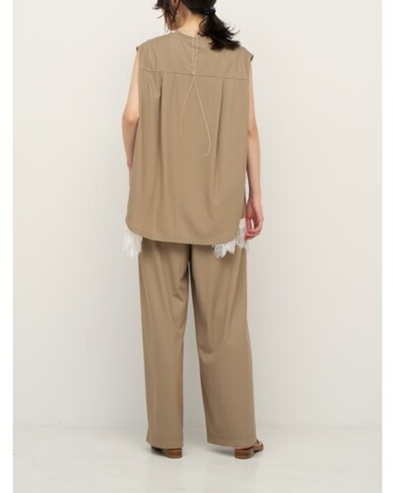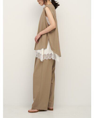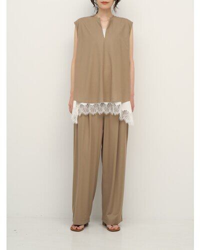 同素材のボトムも展開しており、リラックス感のあるセットアップになっています。イージーケア性が高く、猛暑時期の需要にマッチした実用性の高いアイテムです。