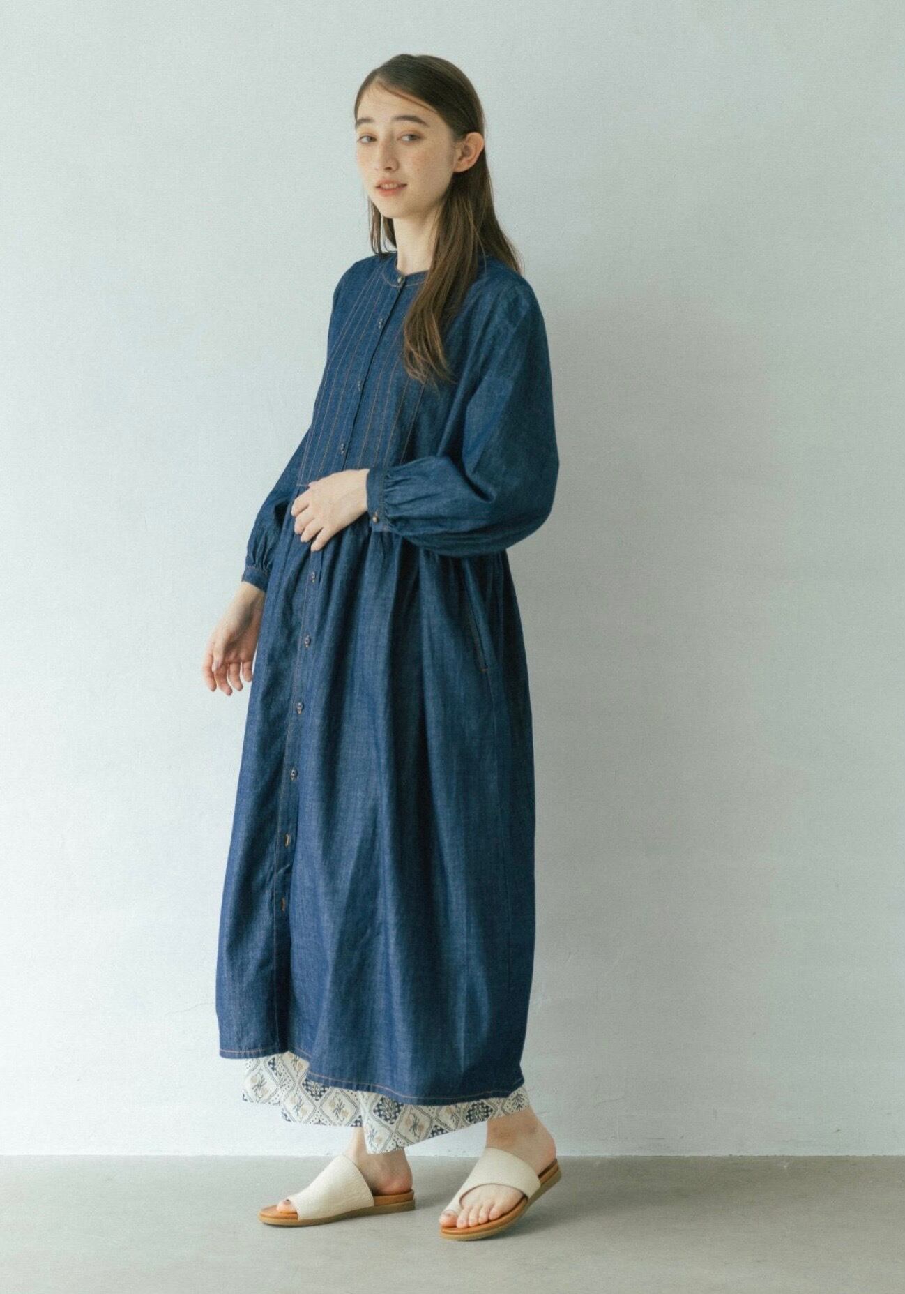 前開きで羽織としても使いやすいワンピースです。