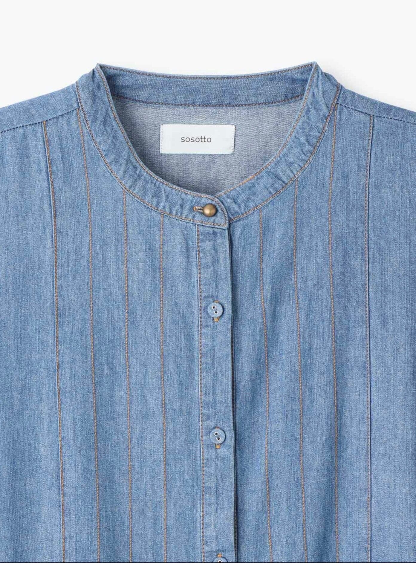 ビブヨーク部分に入った飾りステッチのライン、