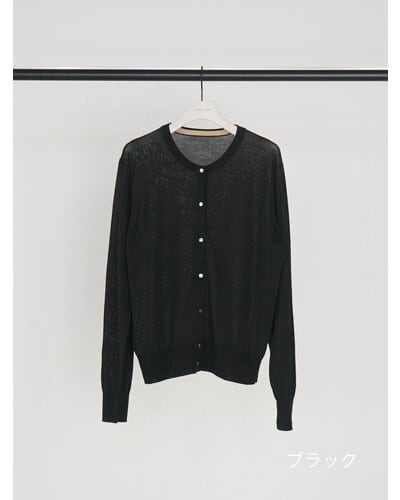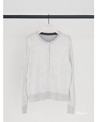16ゲージで丁寧に編み立てた、クリーンなクルーネックカーディガン。