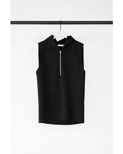 ほんのりコクーンのようなシルエットが、カジュアルなフードデザインに大人のムードをプラスします。ハーフジップ仕様で今っぽさもあり、開き具合で印象を変えられるのもポイント。