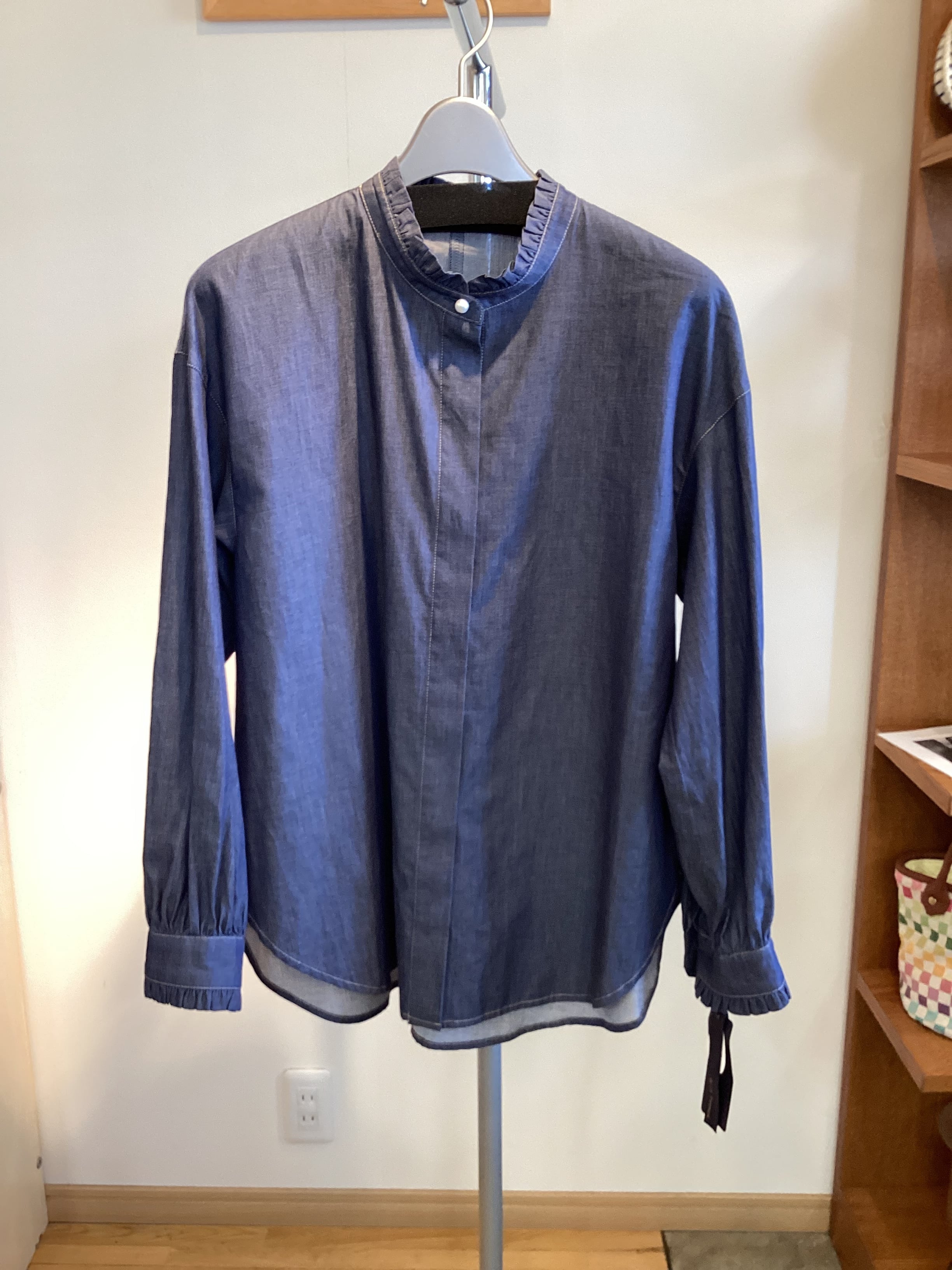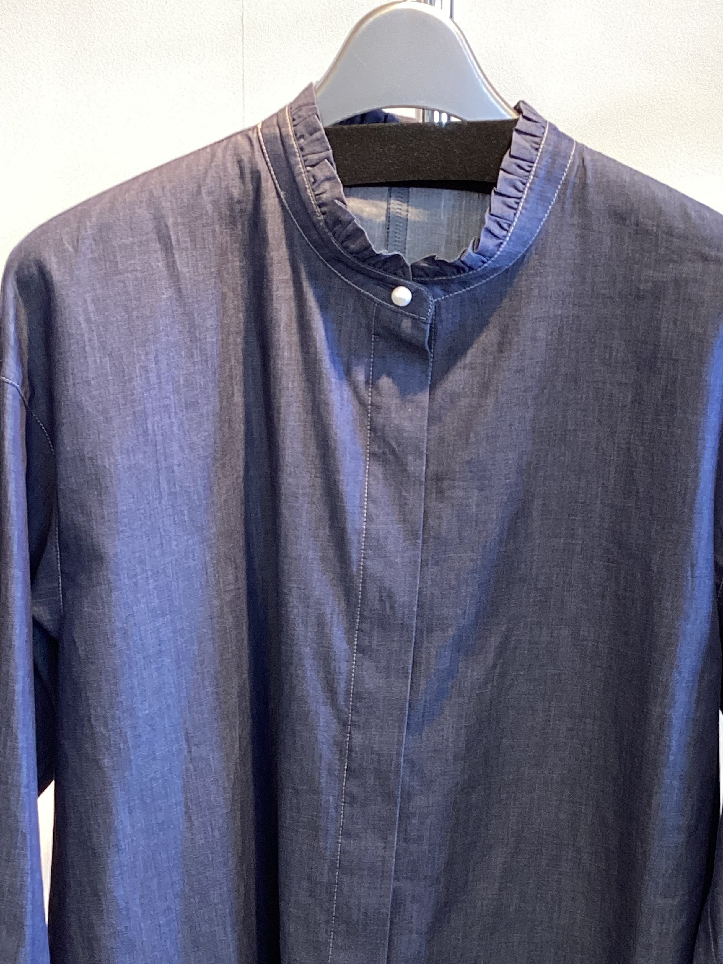 【BLUE FRONCE】デニムハイネックフリルブラウス