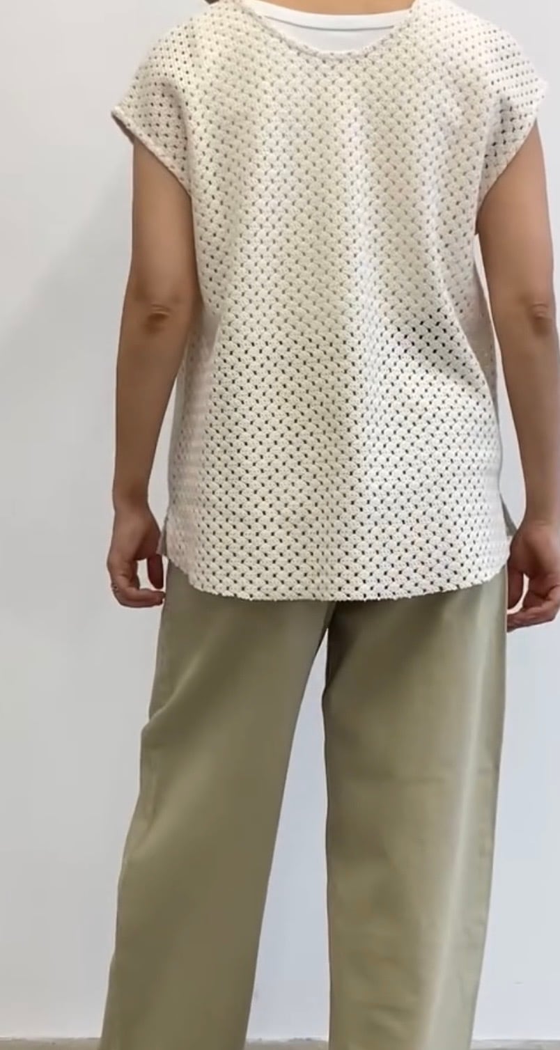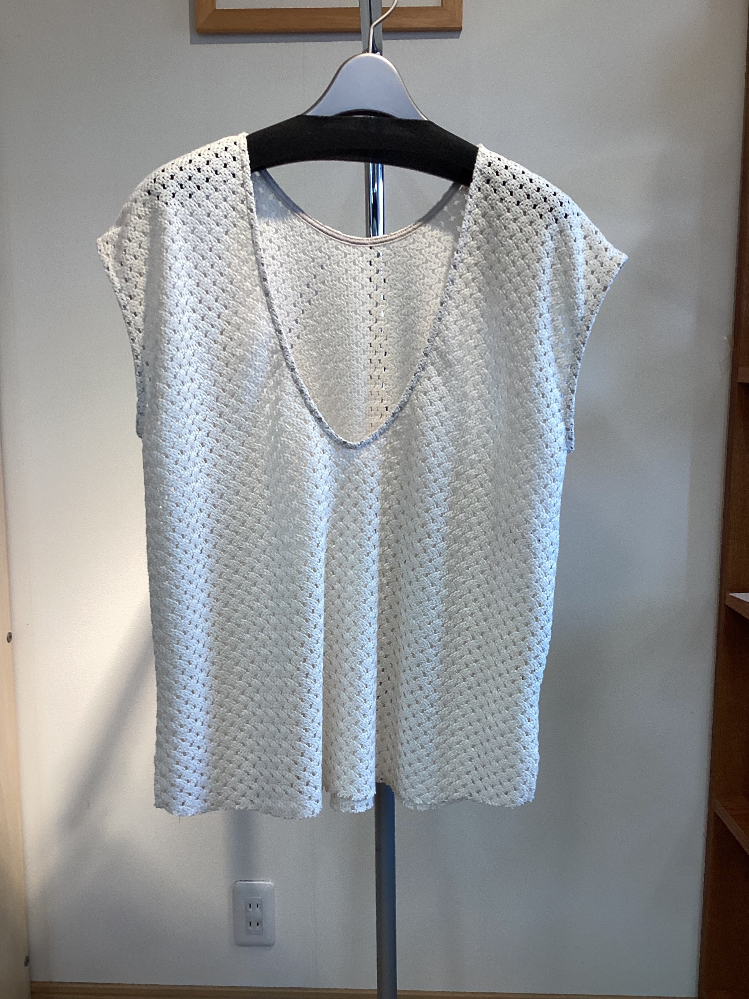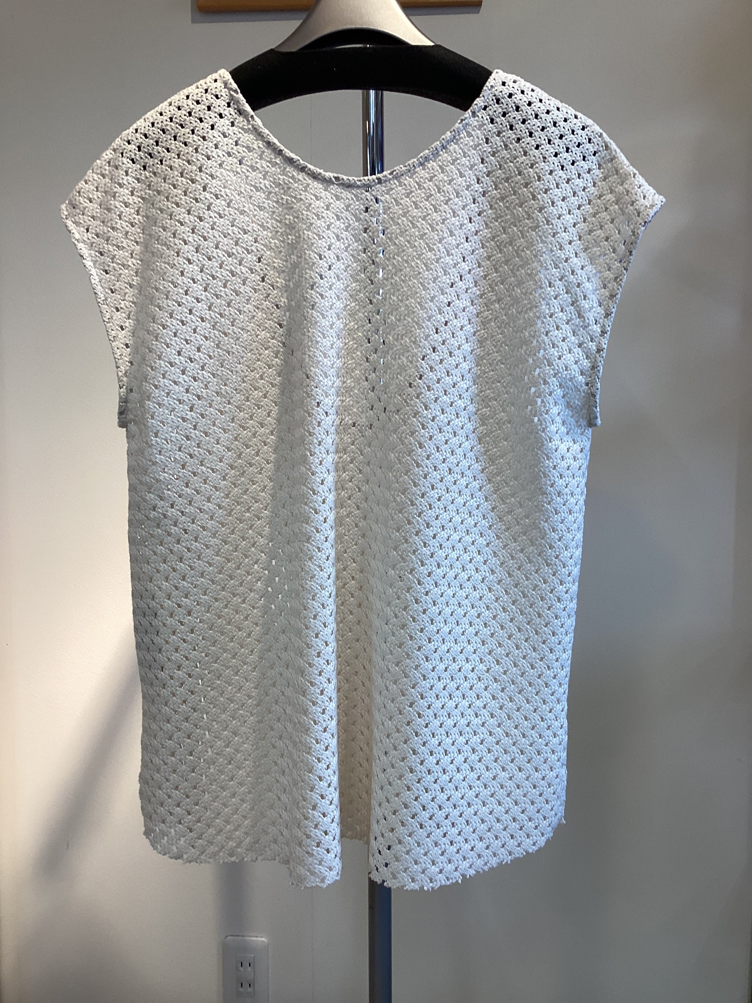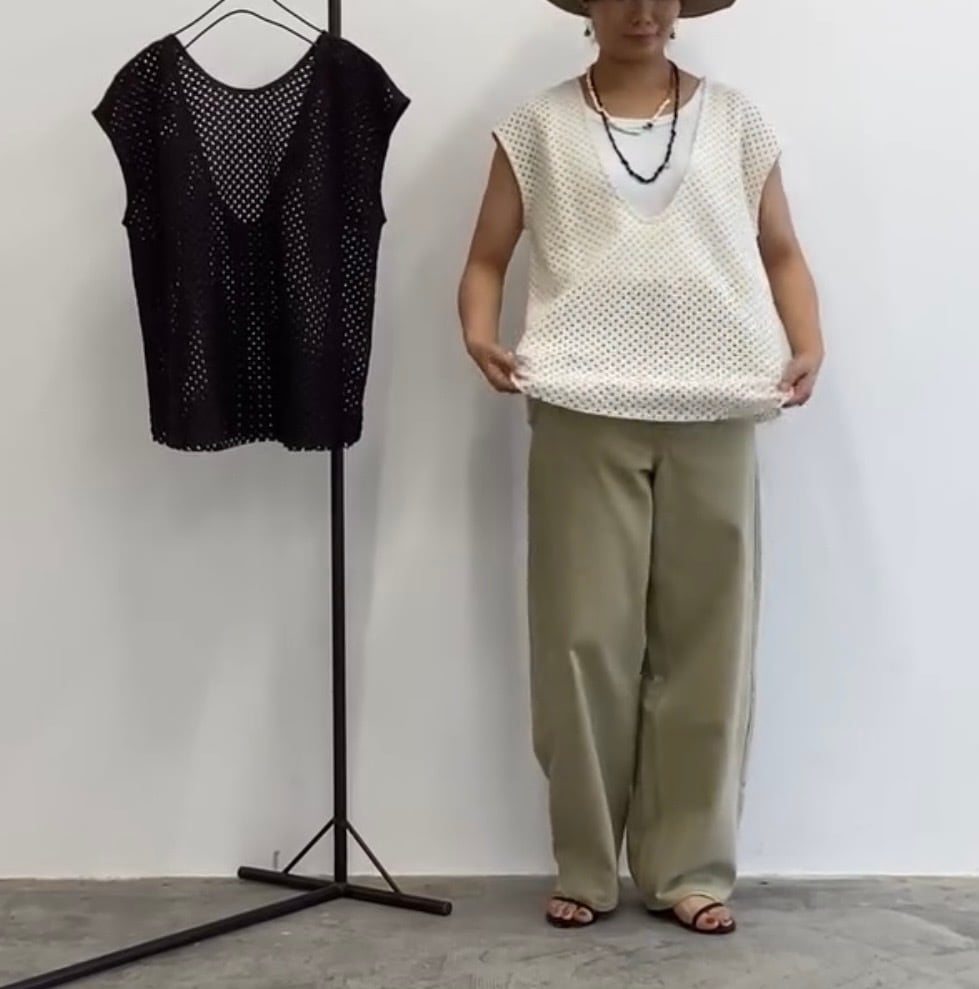 今シーズンはフレンチスリーブにアップデート!ヒップまで隠れて安心感があります。バスケットのようなラッセル編みでニットとも違う着心地。夏はインナーをノースリーブにするのもオススメ!
