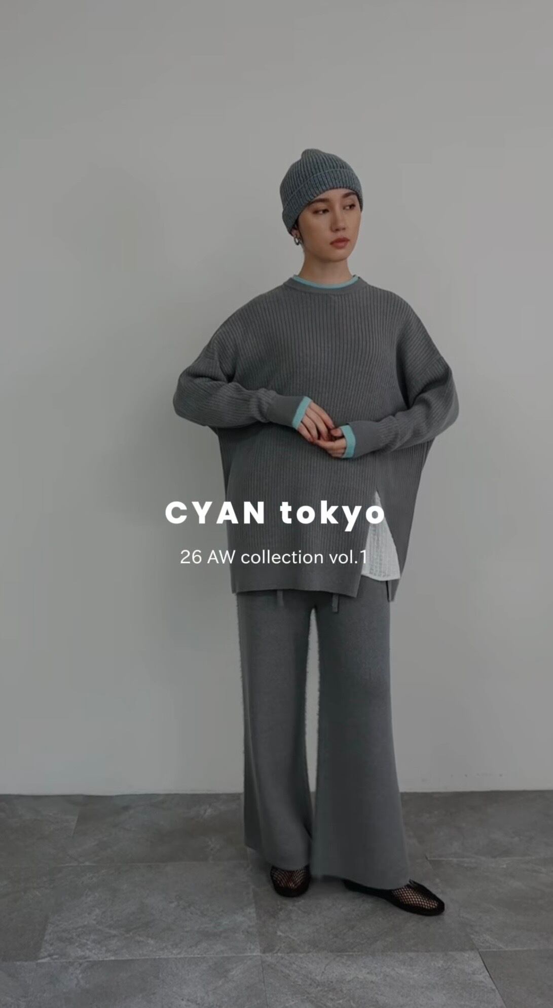 【CYAN TOKYO】2026AW① アシメスリットレイヤーリブニット