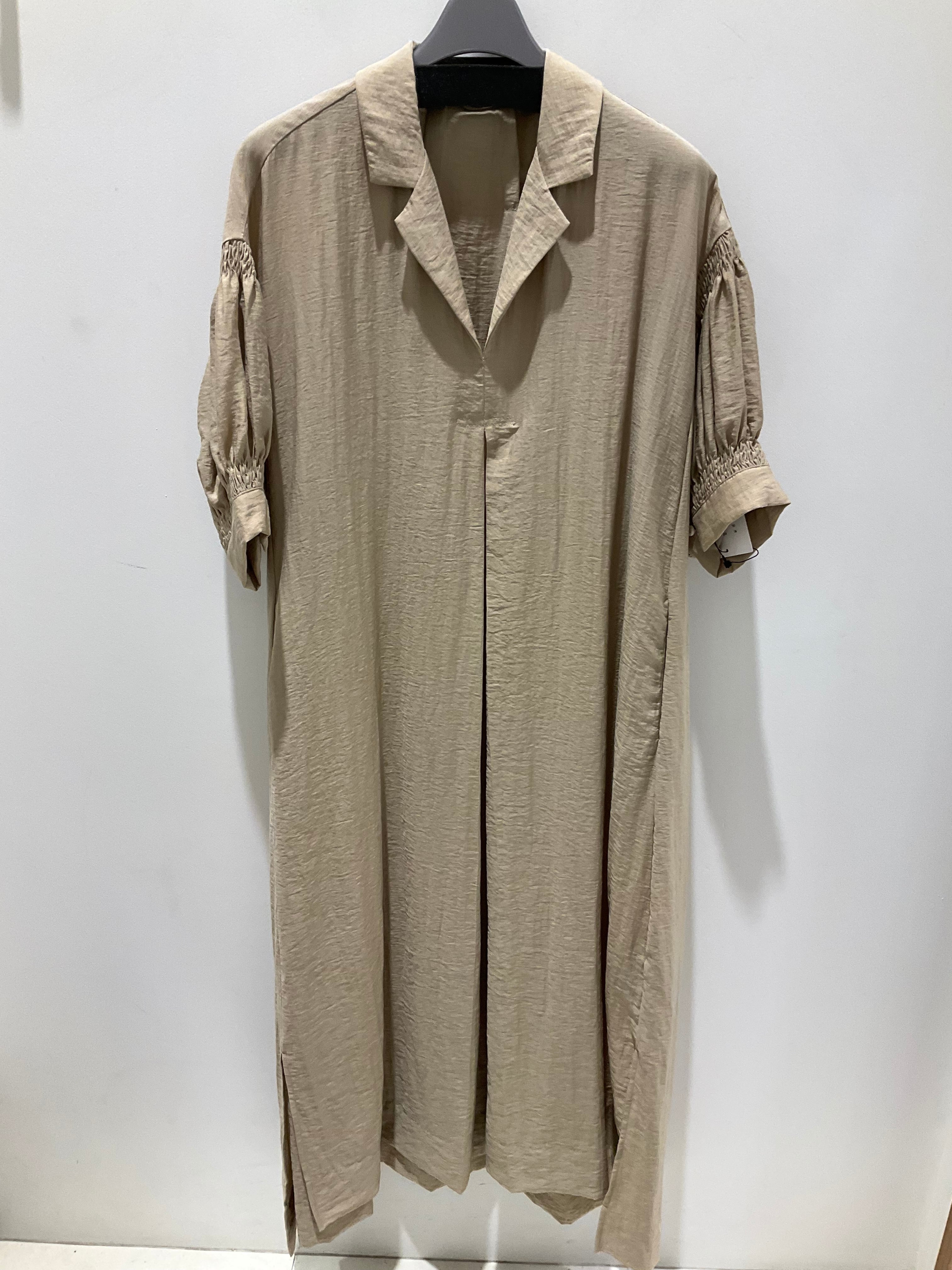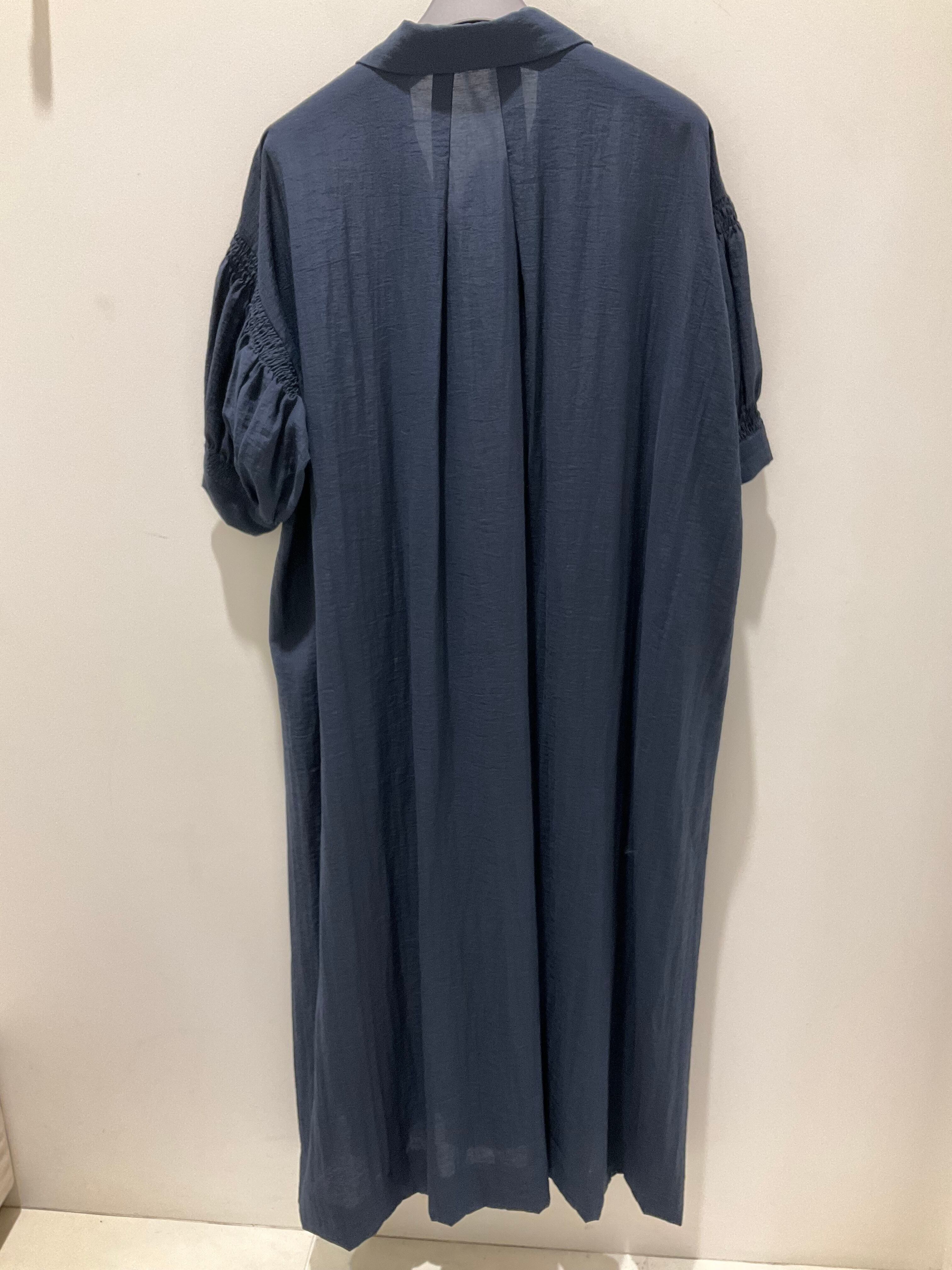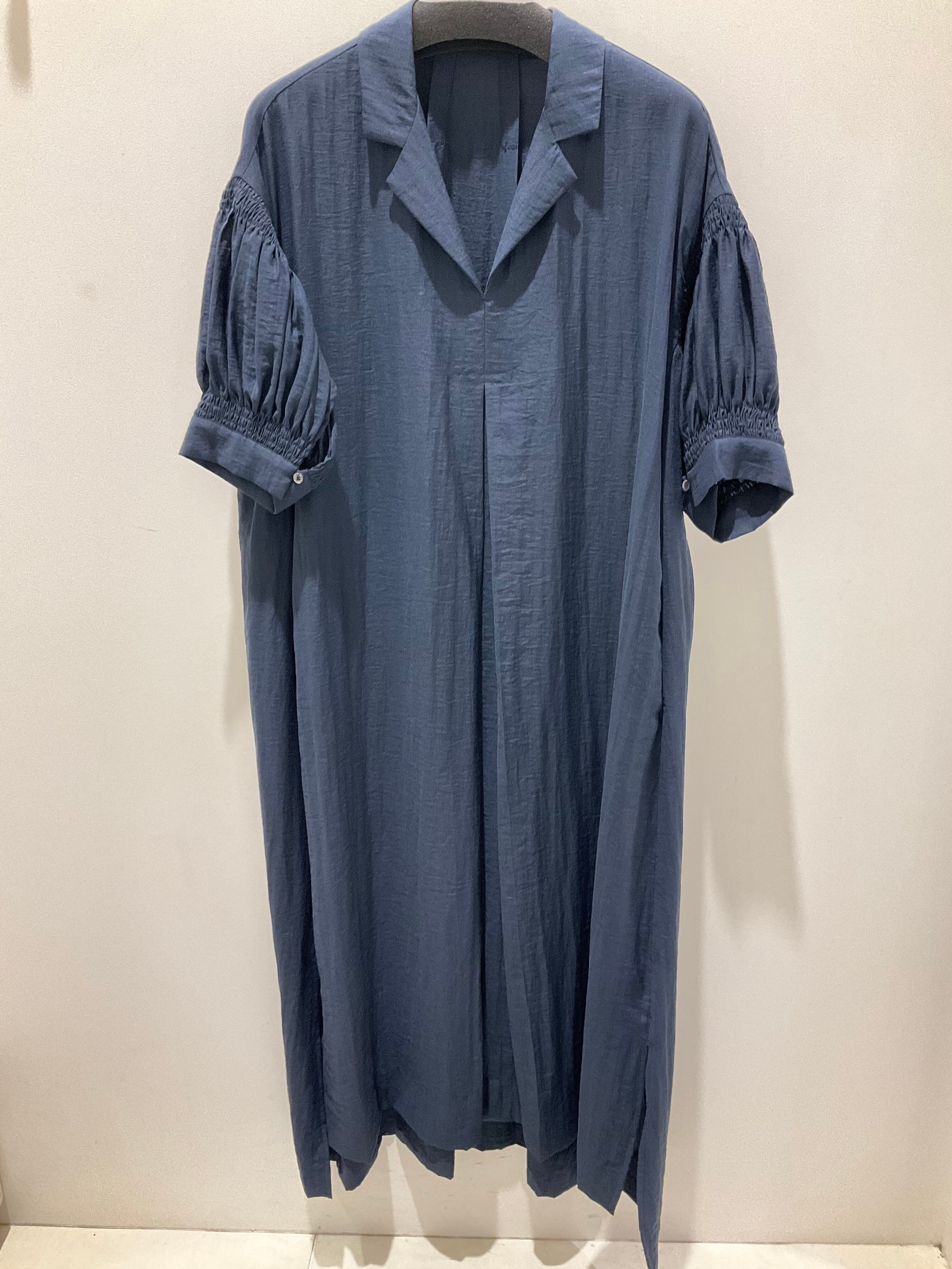 【CLOCHE】襟付袖シャーリングワンピース